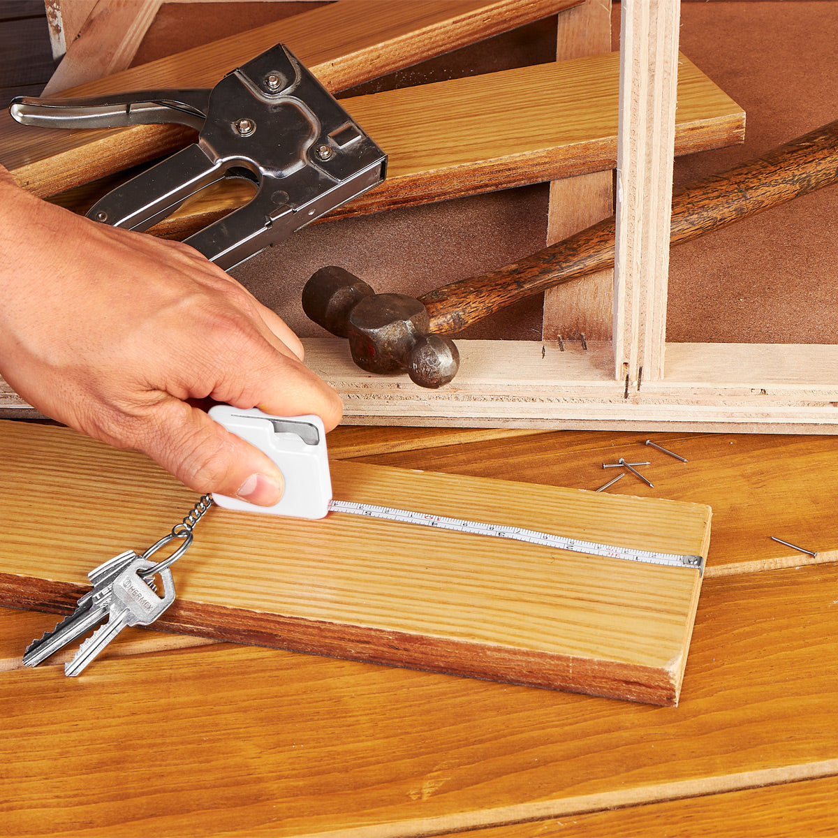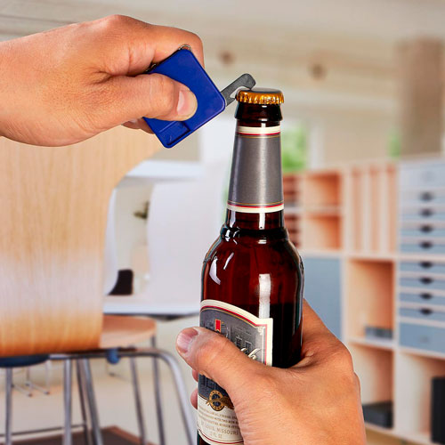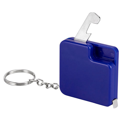 Llavero destapador con flexómetro de cinta metálica de 1 m.