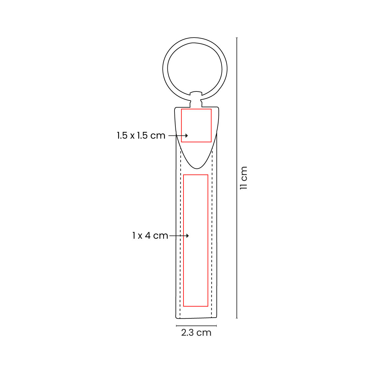 Área de impresión: 1 x 4 cm Curpiel / 1.5 x 1.5 cm Metal