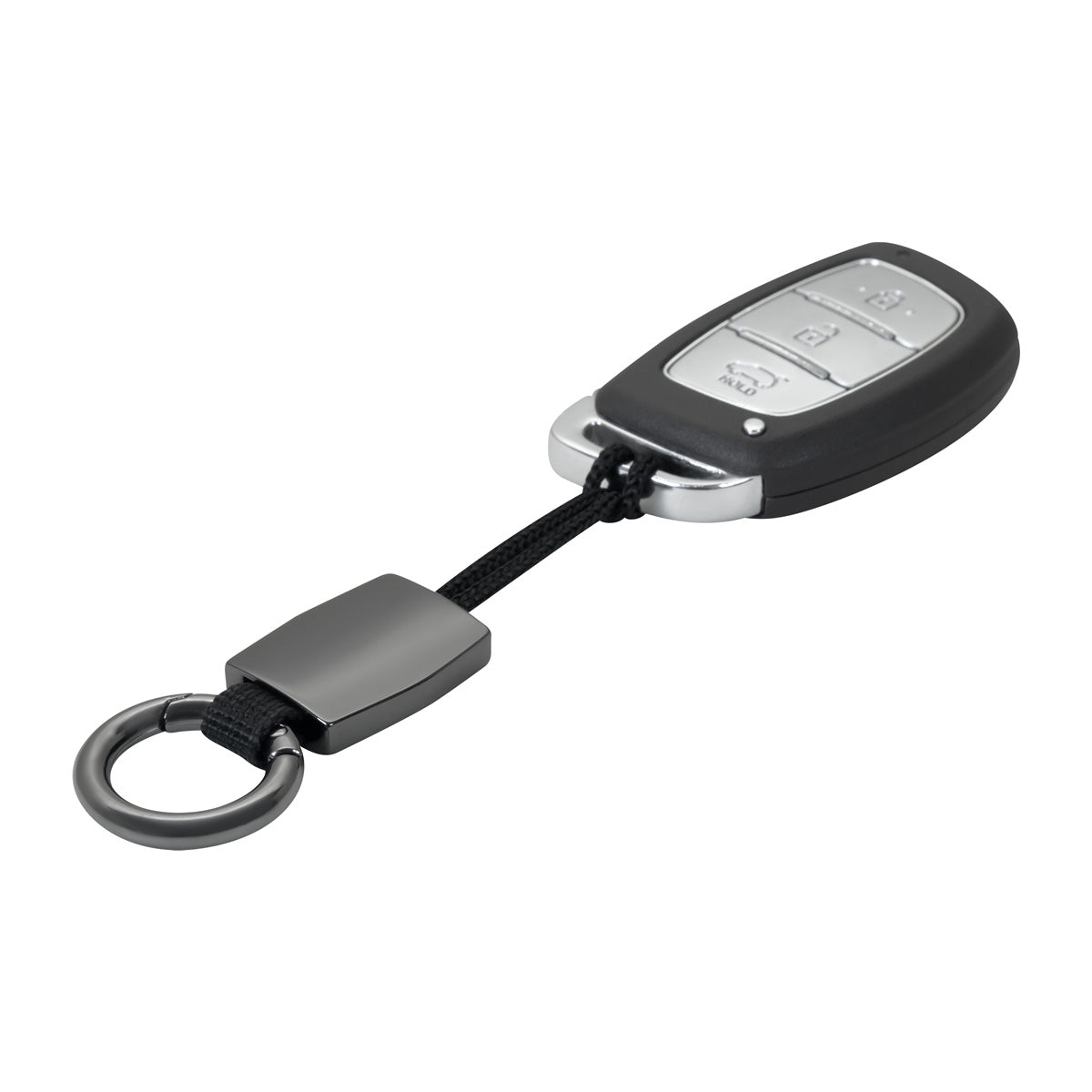 Llavero metalico con argolla tipo gancho. Correa disenada especialmente para llaves de automoviles con ranura estrecha. Este practico llavero te permite sujetar tus llaves de manera rapida y sencilla. Incluye caja individual.