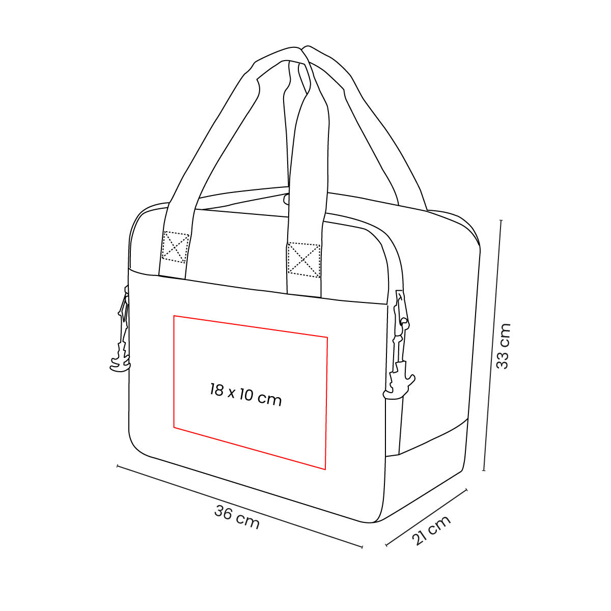 Lonchera con interior plastificado. Su compartimento principal incluye dos cierres independientes y un separador interno que permite utilizar cada espacio por separado. Incluye broches de velcro que permite retirarlo facilmente y obtener asi mayor espacio. Bolsa frontal con cierre de velcro y asas de mano.