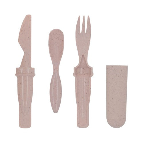 Lonchera y cubiertos con material antimicrobiano eco-friendly. Incluye porta cubiertos con cuchara, tenedor y cuchillo. 3 Compartimentos en el interior. Por el tipo de material, el color puede variar. No recomendado para microondas.
