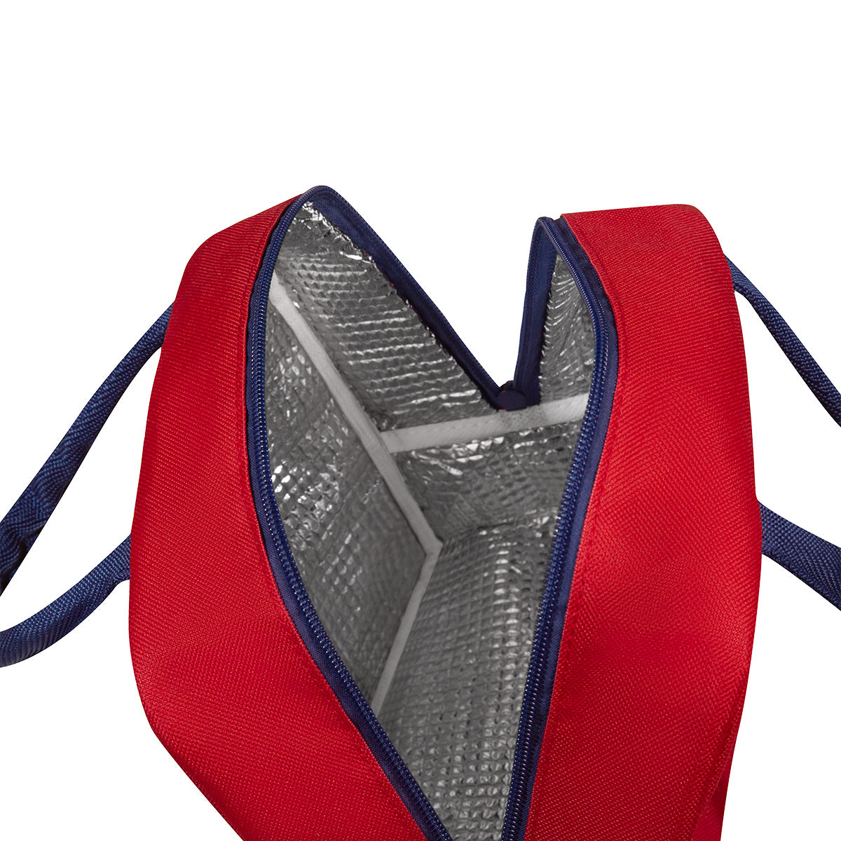 Lonchera con interior metalizado, que le permite mantener alimentos frescos y protegidos, diseno compacto y ligero. Cuenta con una bolsa frontal de rapido acceso, que facilita el almacenamiento de utensilios pequenos o snacks adicionales. Cuenta con asas reforzadas, para sostenerla con mayor comodidad. Capacidad para 6 latas.