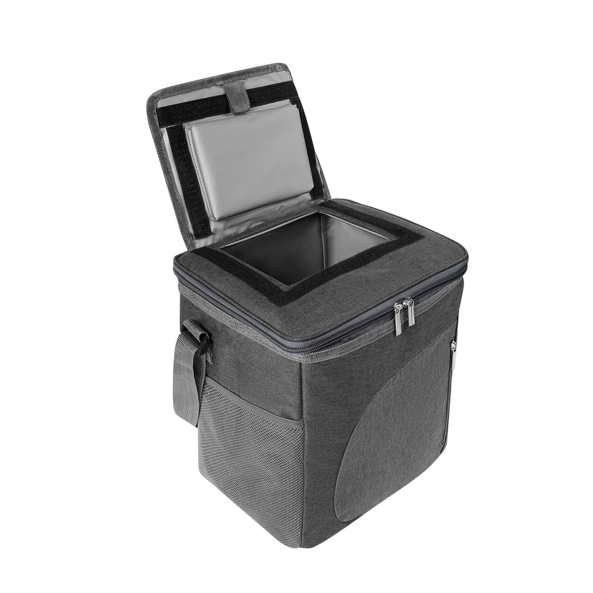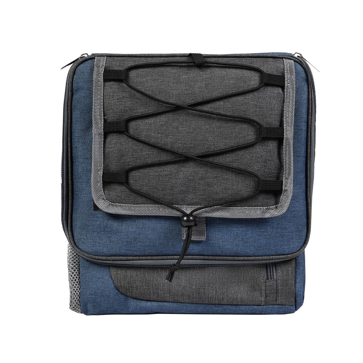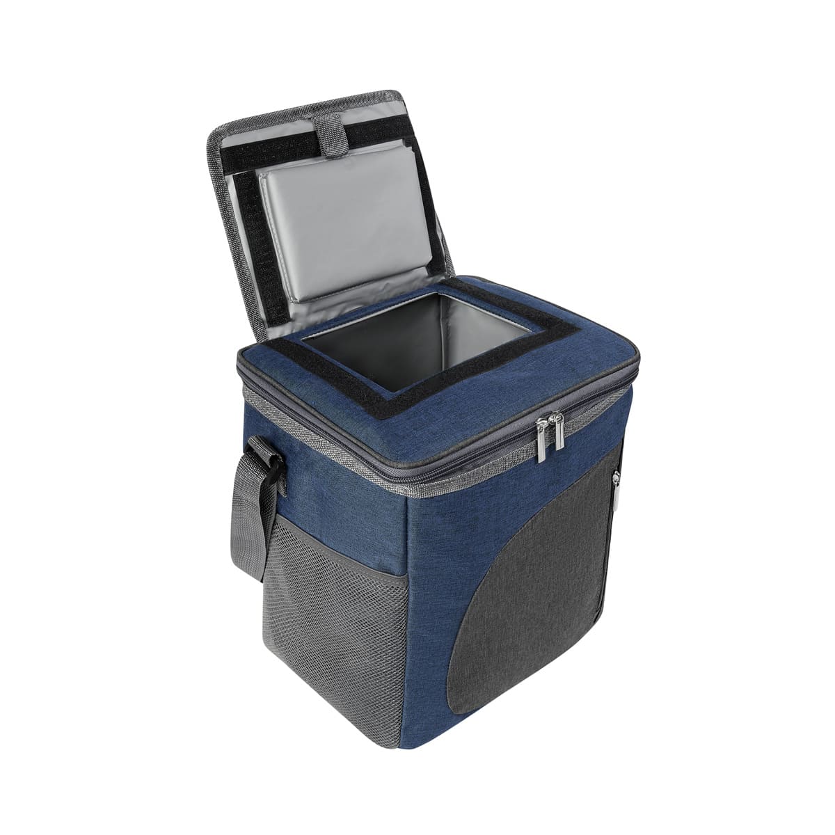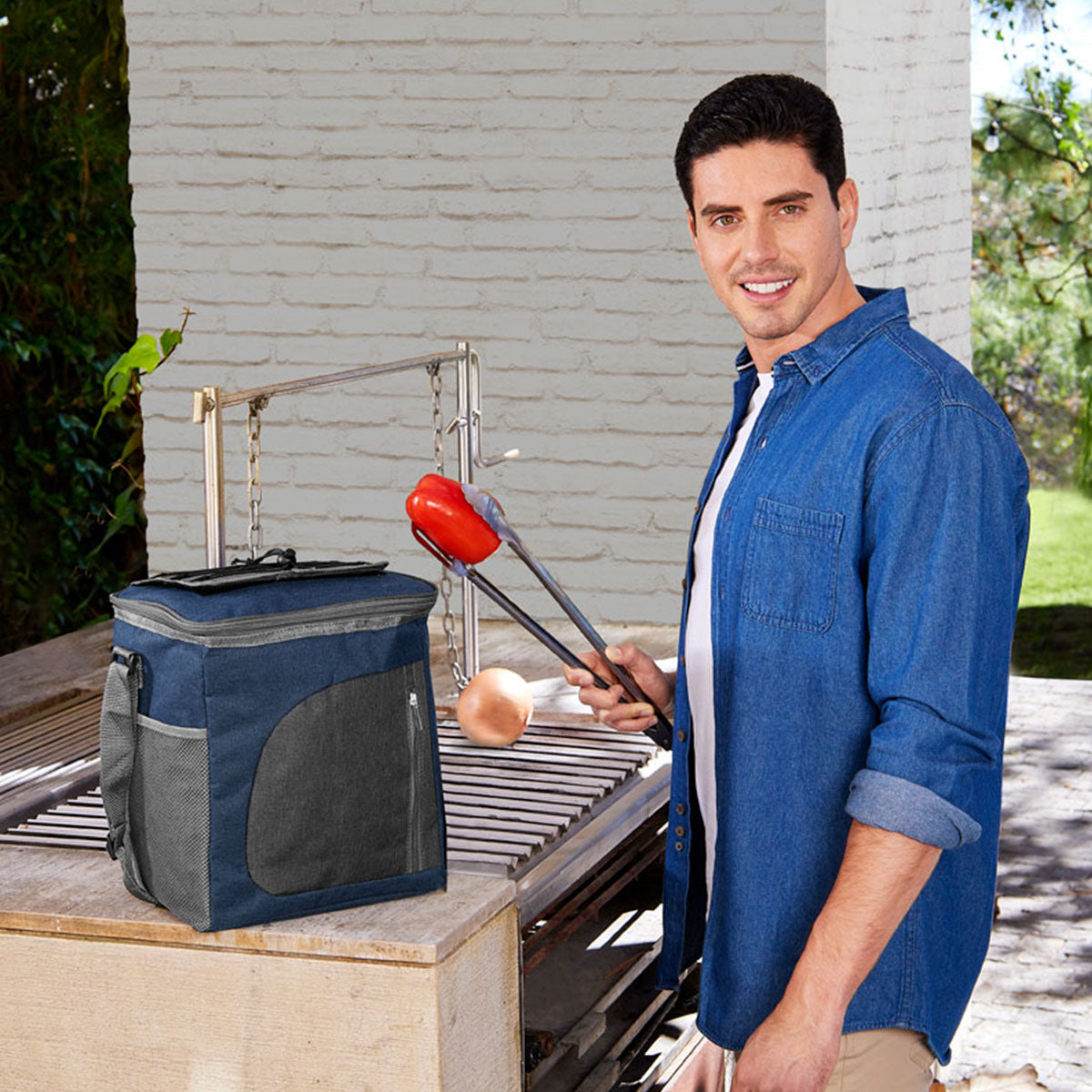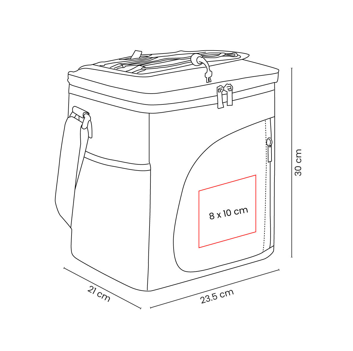 Lonchera con interior plastificado. Cuenta con bolsillo principal con cierre para almacenar tus alimentos de forma segura. Ademas, incluye un bolsillo frontal con cierre para llevar utensilios pequenos. Lateral con bolsillo de malla, perfecto para botellas de agua u otros articulos de acceso rapido. Asa para hombro ajustable, que permite portarla comodamente y a la altura deseada. Para mayor practicidad, cuenta con un acceso rapido en la parte superior, que te permite acceder facilmente a tus alimentos, sin tener que abrir toda la lonchera y un elastico ajustable, para sujetar accesorios adicionales. Capacidad para 16 latas.