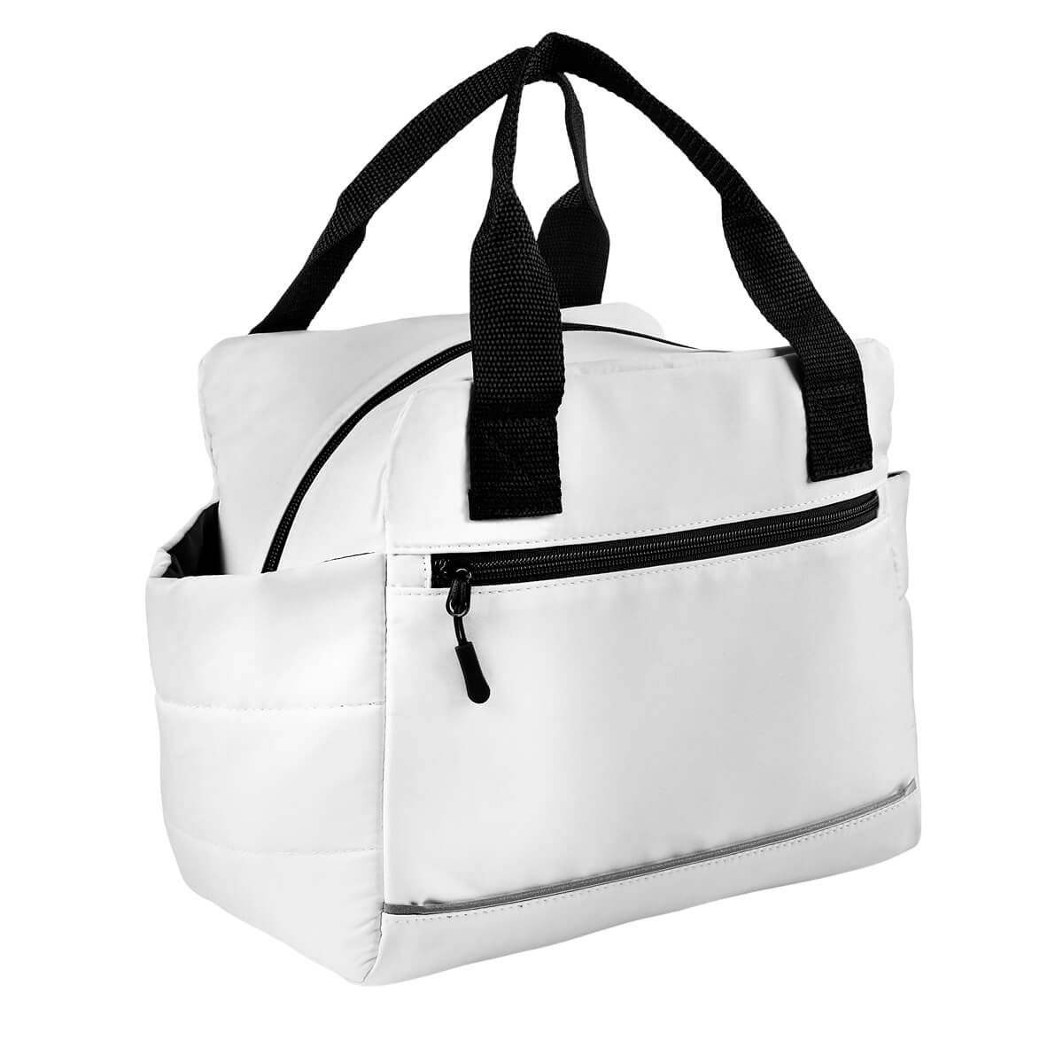 Lonchera con interior plastificado. Compartimento principal con cierre, dos bolsillos laterales y un bolsillo frontal también con cierre, ideal para llevar contigo pequeños snacks. Adicional, agregar un detalle reflejante en la parte frontal, lo que aporta un toque de diseño. Ideal para escuela u oficina, lleva tus alimentos con estilo y de forma segura. Capacidad 12 latas.