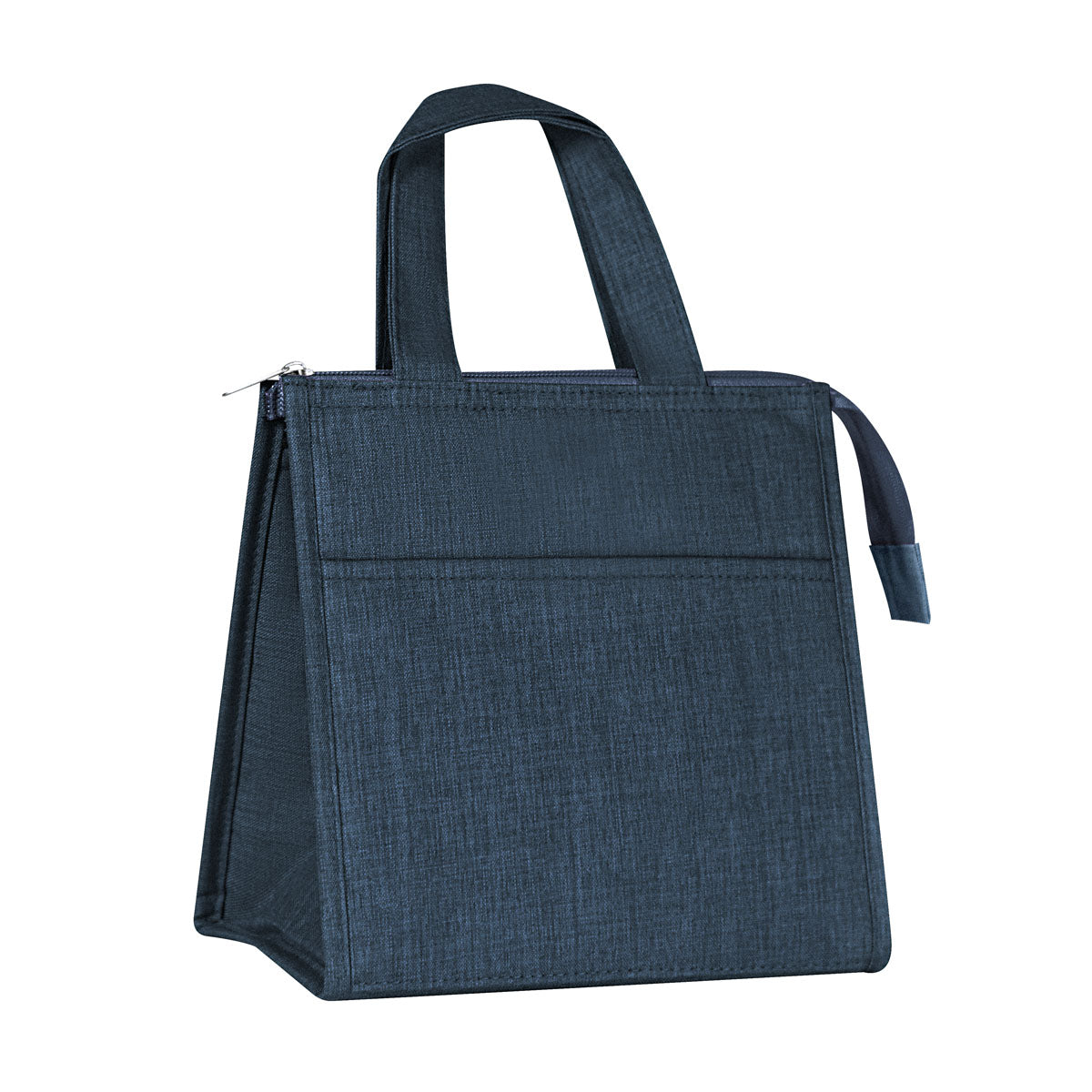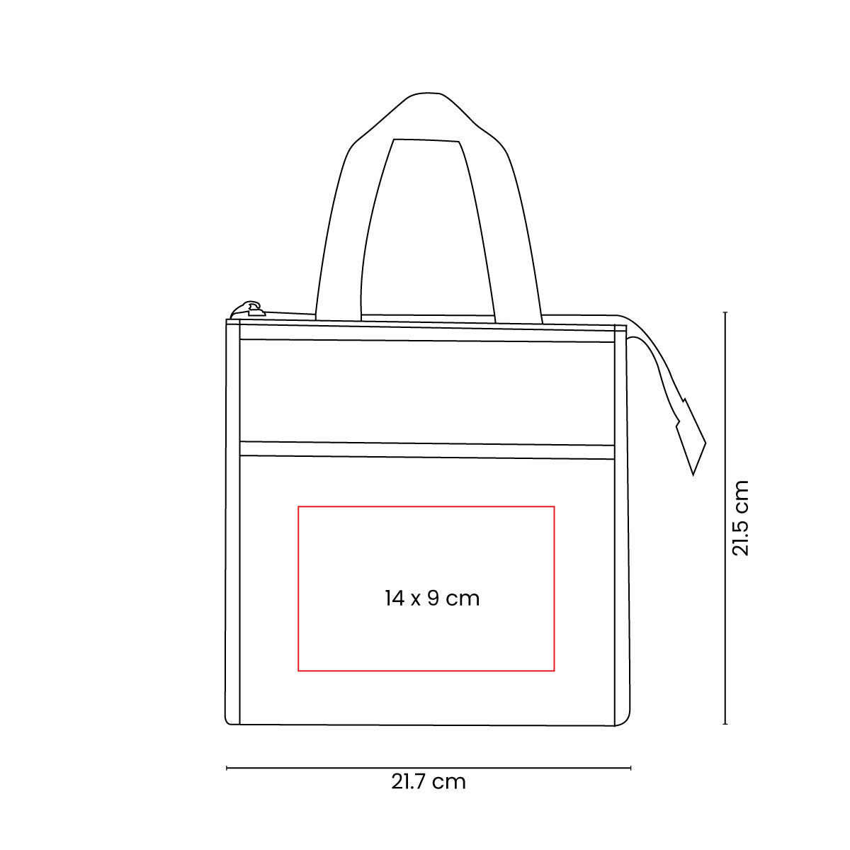 Lonchera de poliéster e interior metalizado, bolsillo frontal para organizar utensilios o pequeños accesorios. Bolsa principal con cierre y asa de mano que facilita su portabilidad. Capacidad para 6 latas.