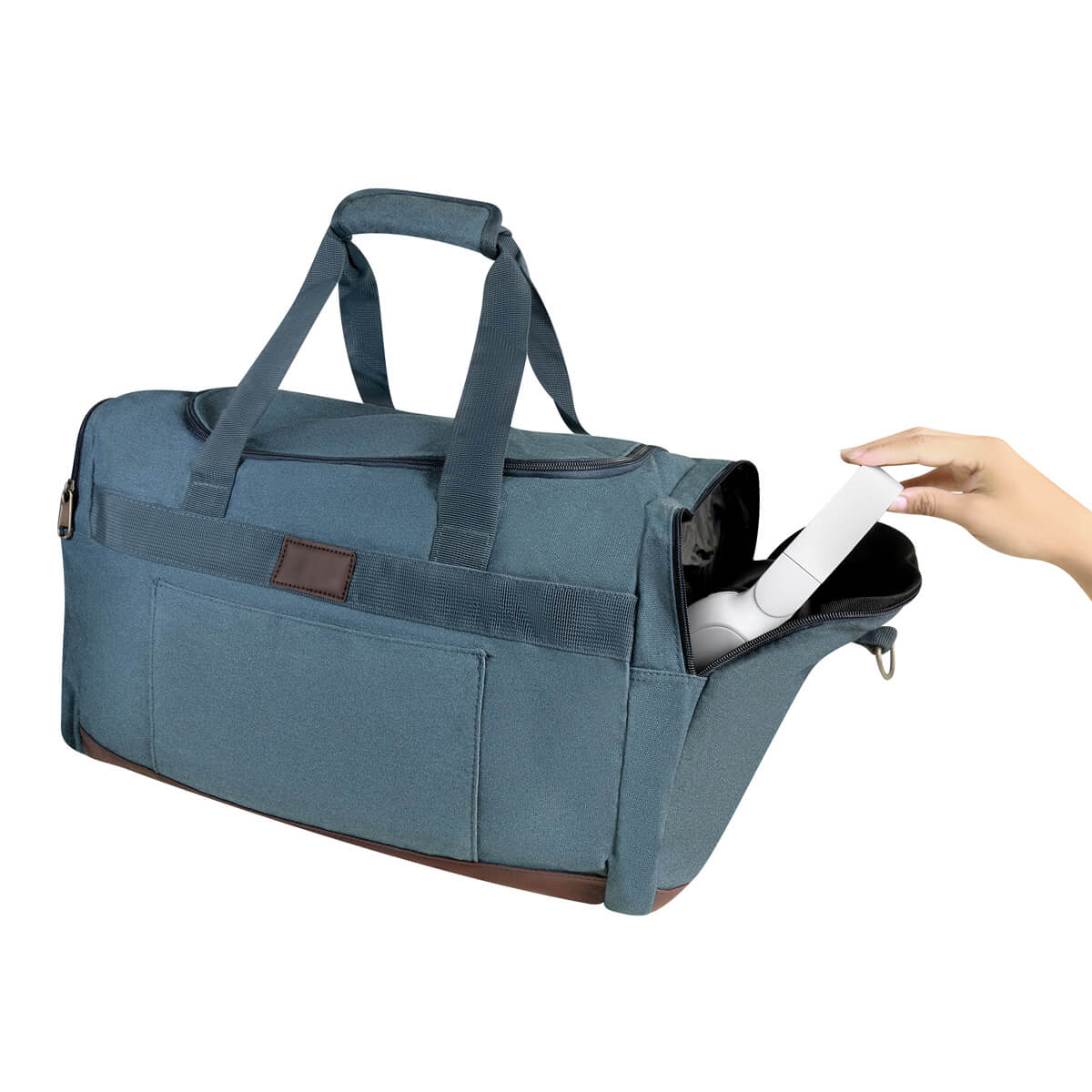 Bolsa principal y bolsas laterales con cierre, bolsillo frontal, asas y correa para hombro, ajustable y removible. Este producto por ser últimas piezas puede presentar alguna variación, no se aceptan devoluciones.
