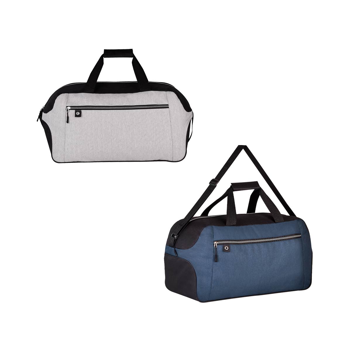 Bolsa principal y bolsa frontal con cierre, asas de agarre superior y correa para hombro ajustable.