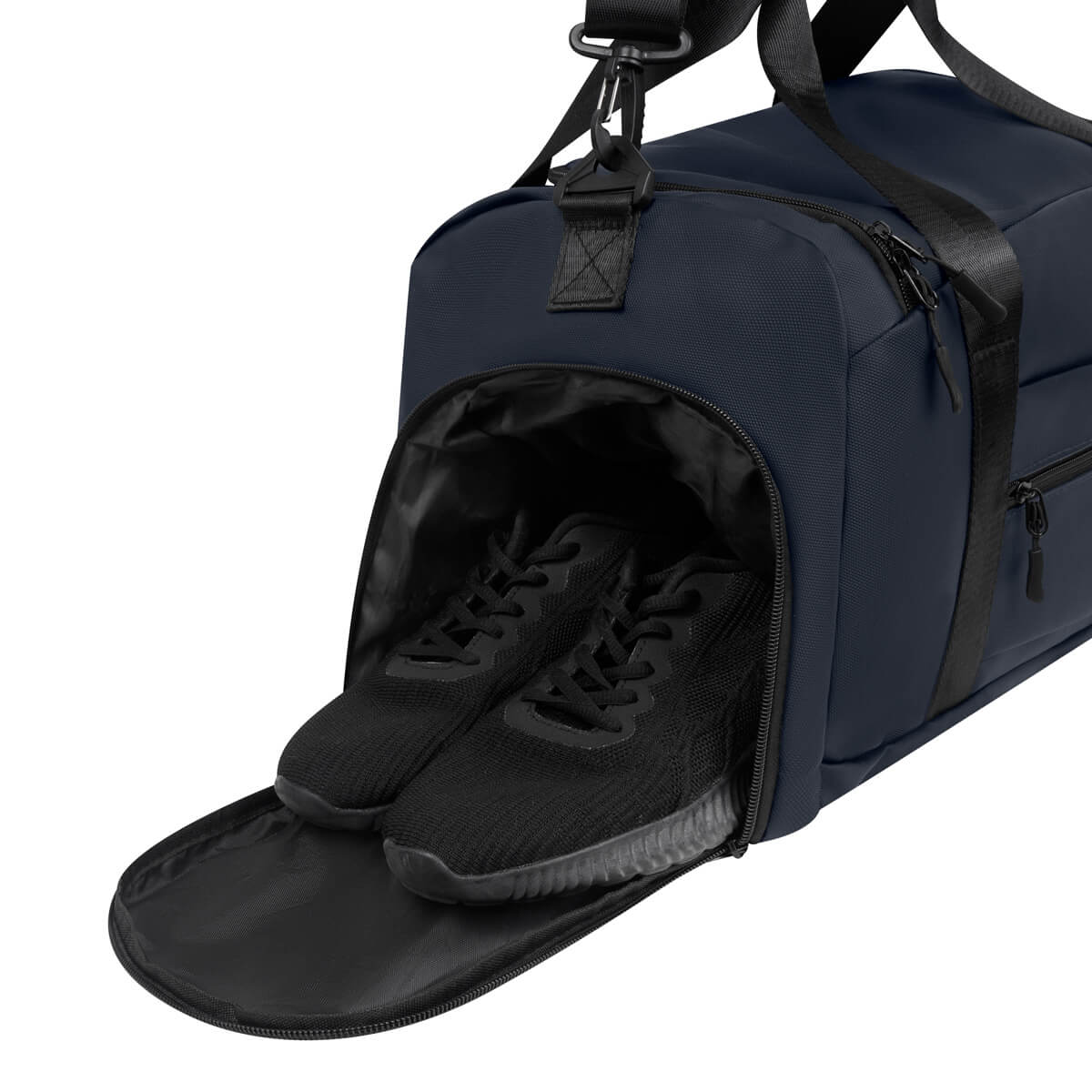 Maleta que ofrece gran versatilidad de uso. Cuenta con un amplio compartimento principal y un bolsillo frontal con cierre. El bolsillo lateral con malla de acceso rápido. Tiene una práctica zapatera resistente a la humedad, para mantener el calzado separado y protegido. Asa ajustable y banda trolley. Por su tamaño, es ideal para llevarlo en un portaequipajes o en el maletero del automóvil.
