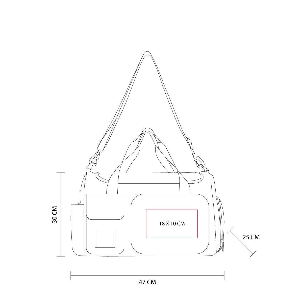 Maleta deportiva con bolsa principal con cierre y bolsa interna resistente al agua. Incluye compartimento lateral con cierre para guardar su calzado. Bolsa con cierre al frente, bolsillo con cerrado de velcro e identificador de silicon para su facil localizacion. Para mayor comodidad cuenta con 2 asas de transporte superior, correa ajustable y removible para hombro y aditamento especial trasero para colocar en trolley.