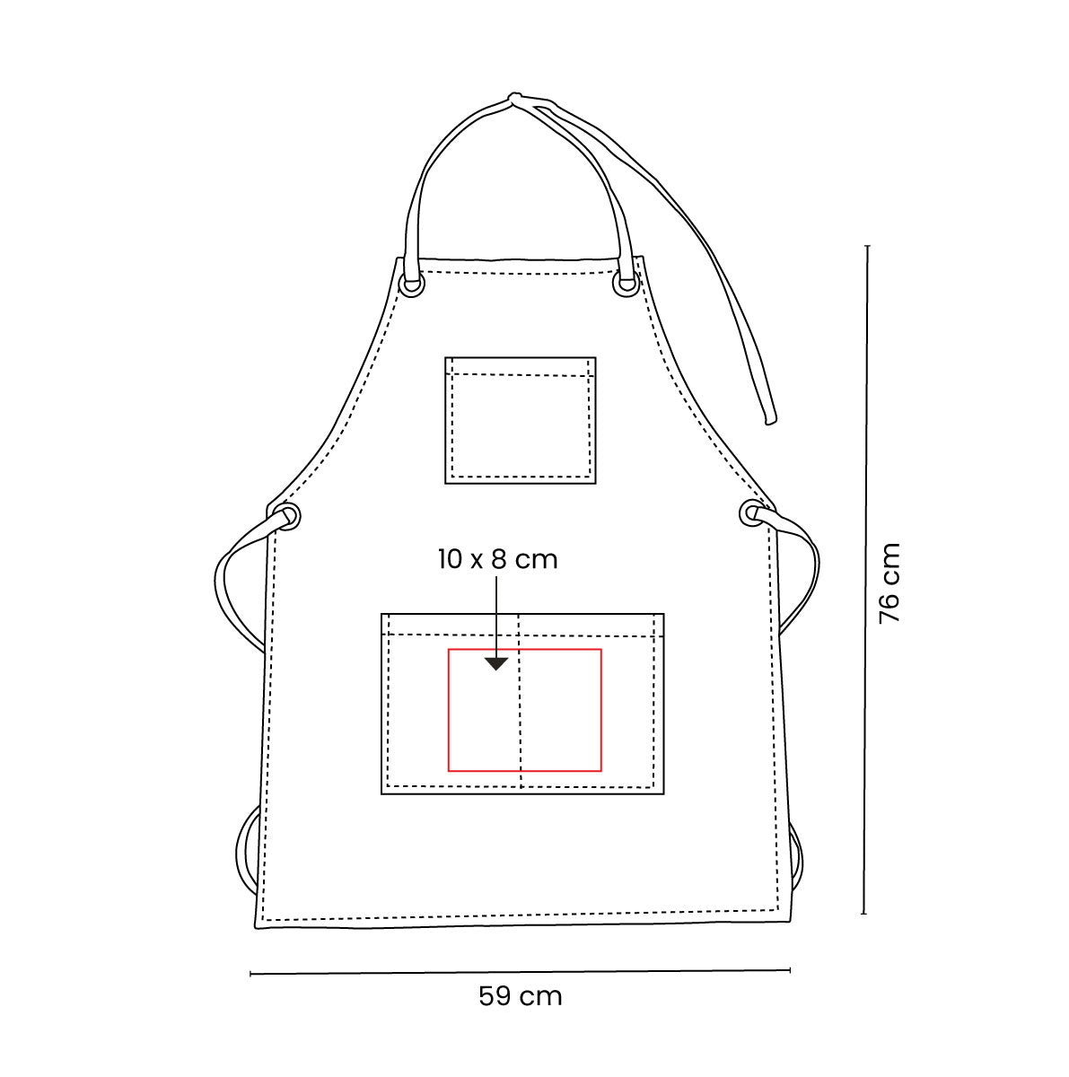 Incluye 3 bolsillos frontales y correa para cuello ajustable por medio de broche metálico.