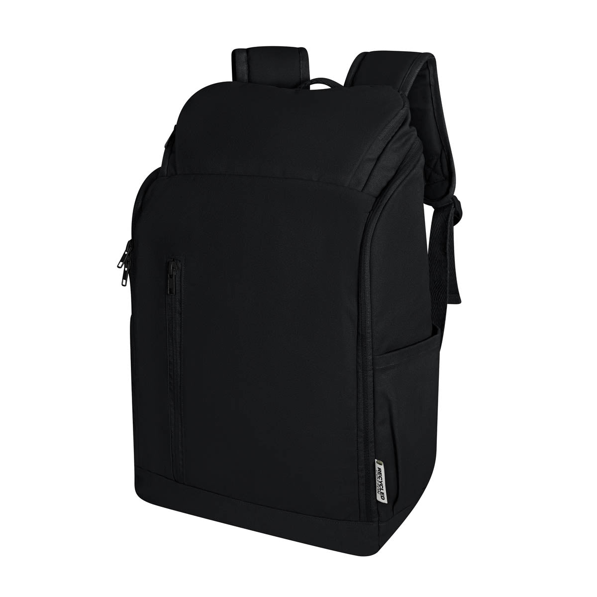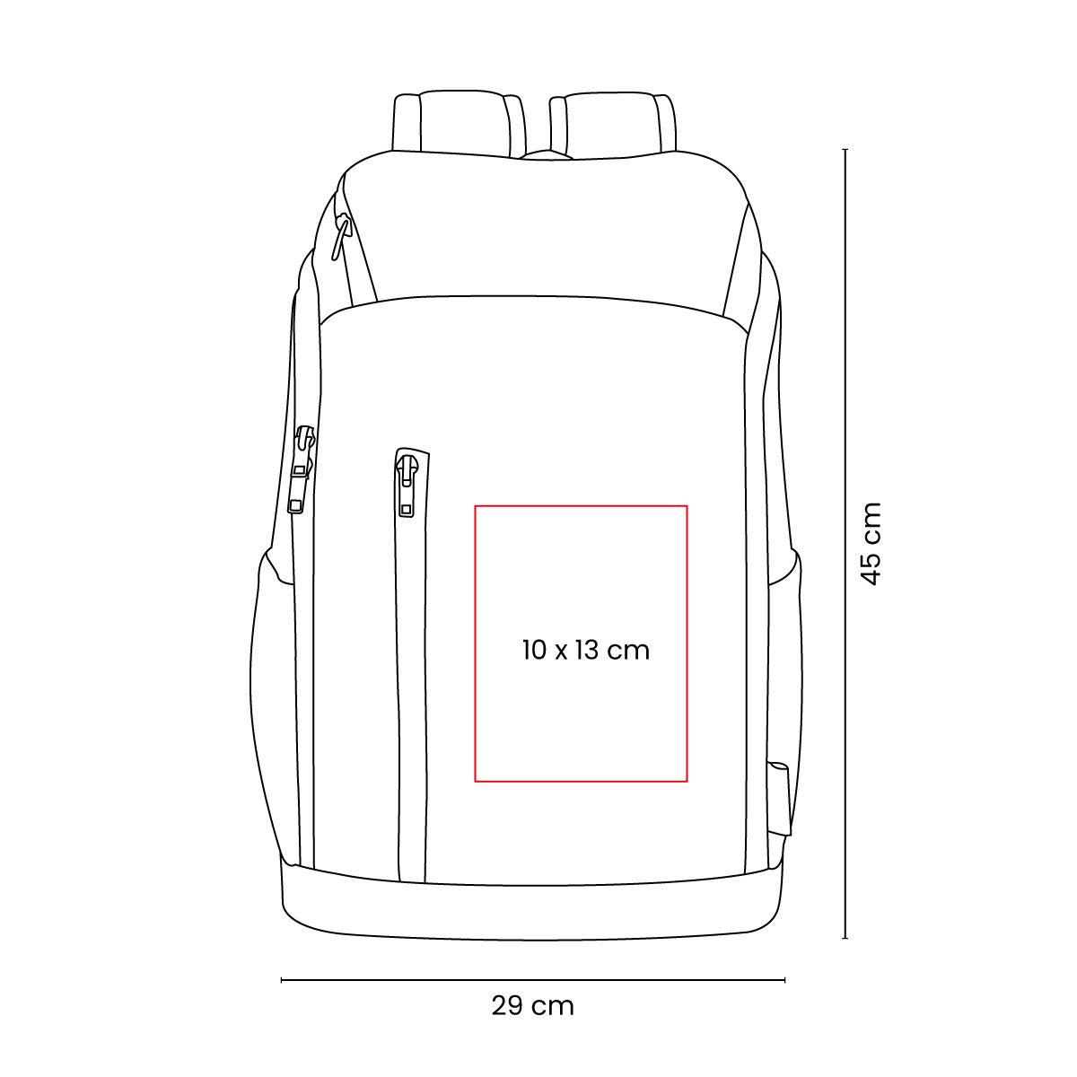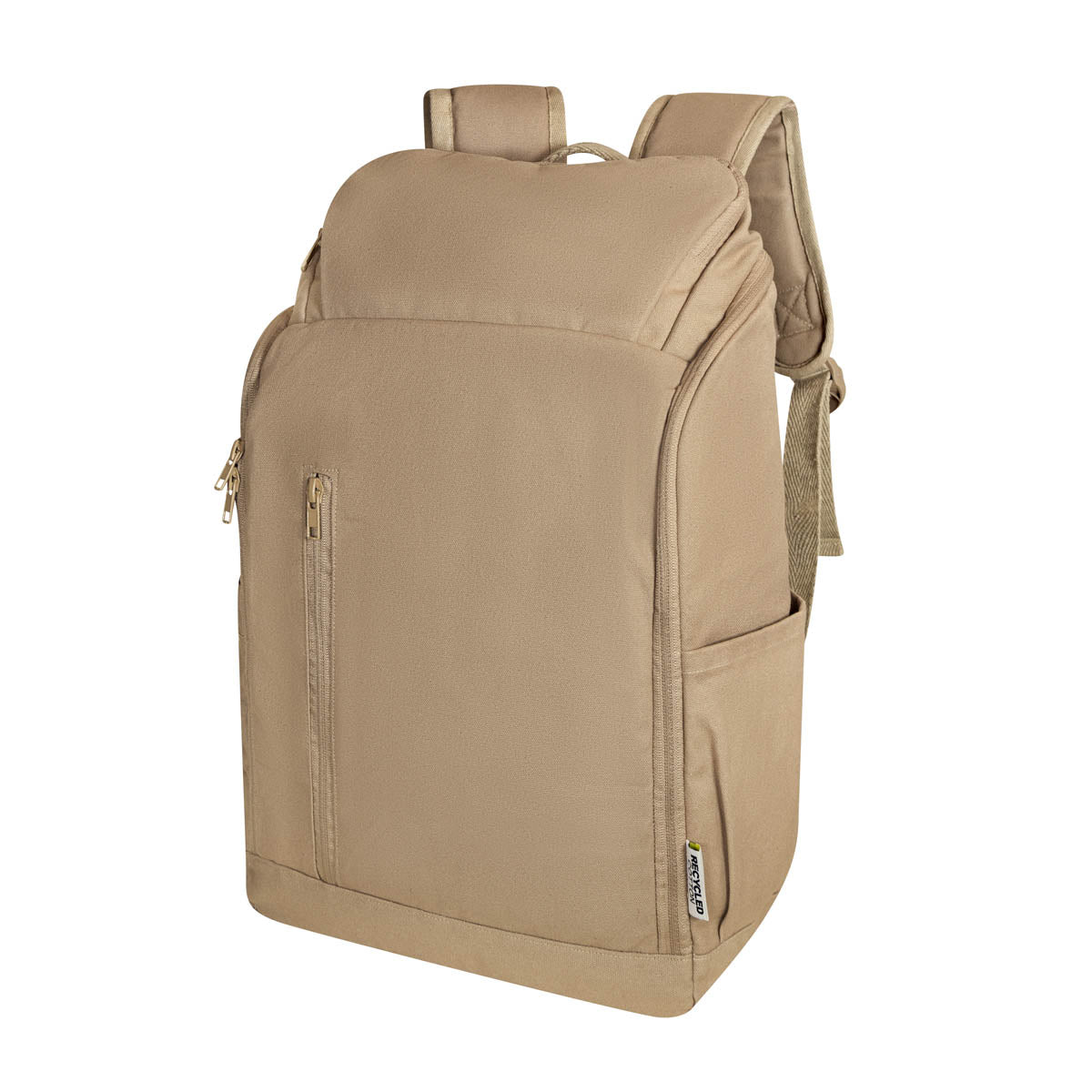 Mochila ecológica de algodón reciclado, el balance perfecto entre sustentabilidad y funcionalidad, lo que la hace tu compañera perfecta para tu día a día. Equipada con un compartimento acolchado para laptop hasta 15" en el bolsillo principal, un bolsillo frontal con cierre, un práctico bolsillo superior para objetos pequeños y dos bolsillos laterales para una organización impecable. Además, su banda en la parte trasera te permite adaptarla fácilmente a tu trolley.