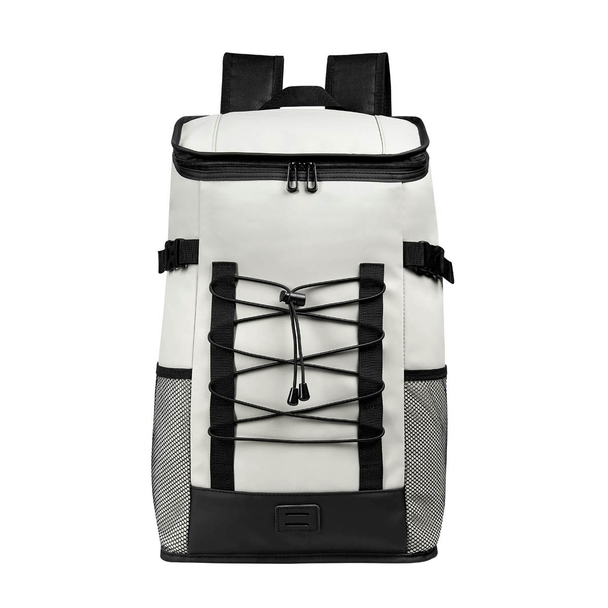 Hielera con funcion de mochila, con interior plastificado impermeable. Espacioso compartimento principal con cierre, pequeno bolsillo con cierre en la parte superior y 2 bolsillos laterales de red. Al frente, incluye elastico ajustable para llevar accesorios adicionales. En la parte posterior cuenta con asas de mochila ajustables, espalda acojinada para mayor comodidad y banda que facilita su transporte en trolley. Ideal para una tarde en la playa, pesca o senderismo. Capacidad para 24 latas.