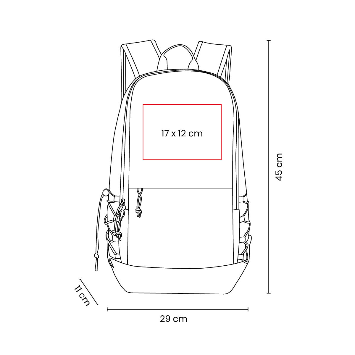 Bolsa principal y frontal con cierre. Bolsas laterales de elastico con jareta. Tirantes ajustables con tira reflejante. Incluye asa de agarre superior. Con capacidad para laptop de hasta 16".