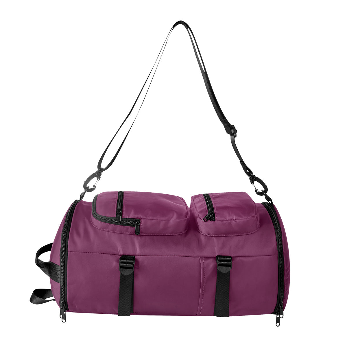 Mochila con funcion de maleta. Bolsa principal con cierre. Compartimento interno para laptop de 17". Bolsillo interior resistente al agua, bolsillo inferior con espacio y cierre para calzado. 2 bolsillos laterales. Compartimento trasero para ocultar asas. Incluye broches laterales para ajustar el tamano, ademas de una correa removible para usar como maleta. Sus multiples espacios, permiten organizar mejor tus objetos personales. Ideal para utilizarla en viajes cortos o en el gimnasio.