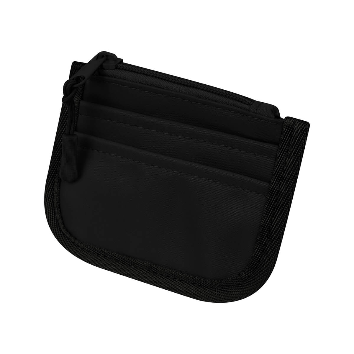 Monedero compacto con diseño funcional. Incluye tres compartimentos para tarjetas, dos al frente y uno posterior. Compartimento principal con cierre de fácil agarre. Ideal para llevar tus tarjetas, monedas y billetes bien organizados.
