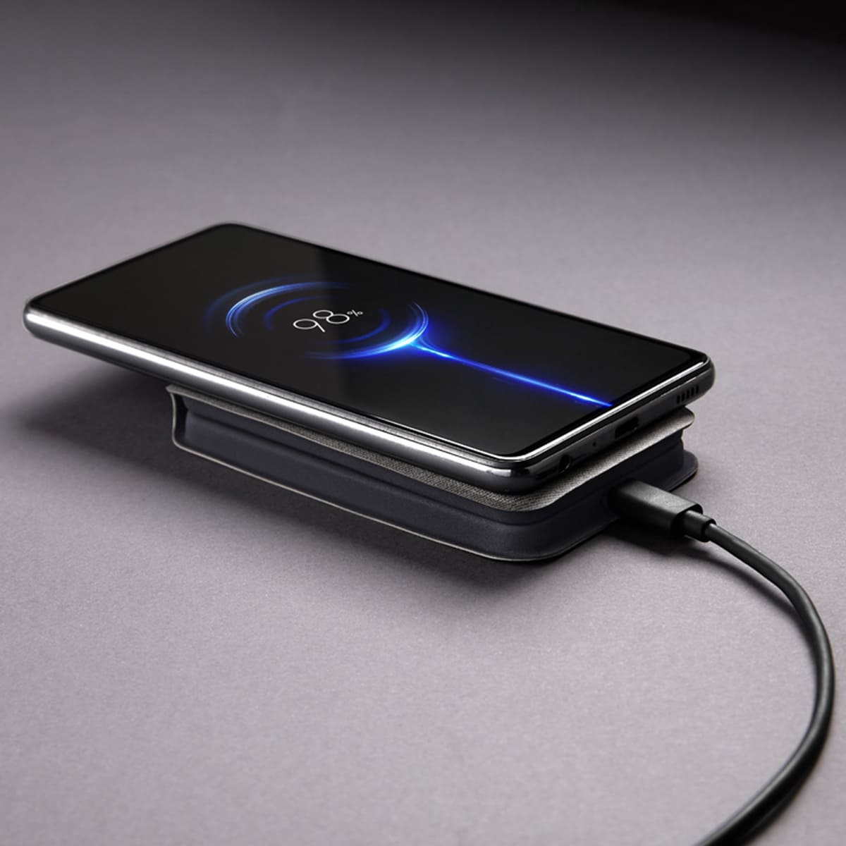 Cargador inalambrico con diseno plegable. Cuenta con triple funcion: estacion de carga para smartphone con tecnologia magnetica, reloj inteligente y audifonos de 2.5W / 5W / 15W. Compatible con dispositivos que cuenten con tecnologia de carga inalambrica. Incluye cable auxiliar con conector tipo C y caja individual.