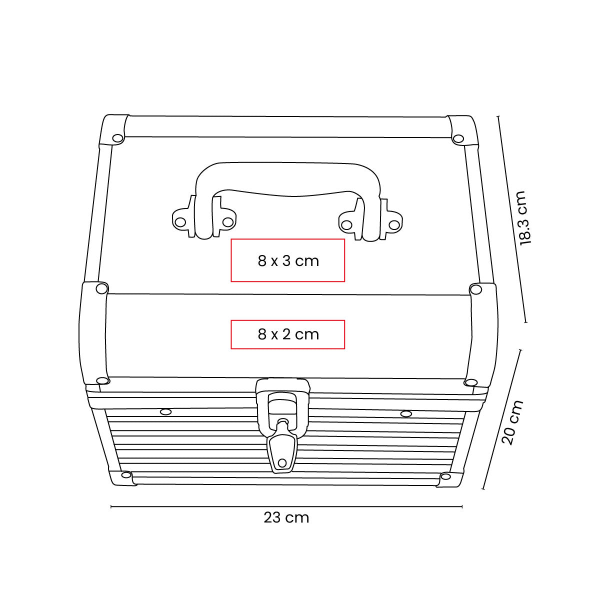 Neceser maletín multifuncional reforzado. Organiza todos tus productos de belleza de manera eficiente. Gracias a su diseño expandible, incluye 4 charolas; una especial para joyería. Cierre con broche metálico, incorpora una cerradura con llave para mantener el acceso controlado. Asa superior para utilizarla en casa o para viajar.