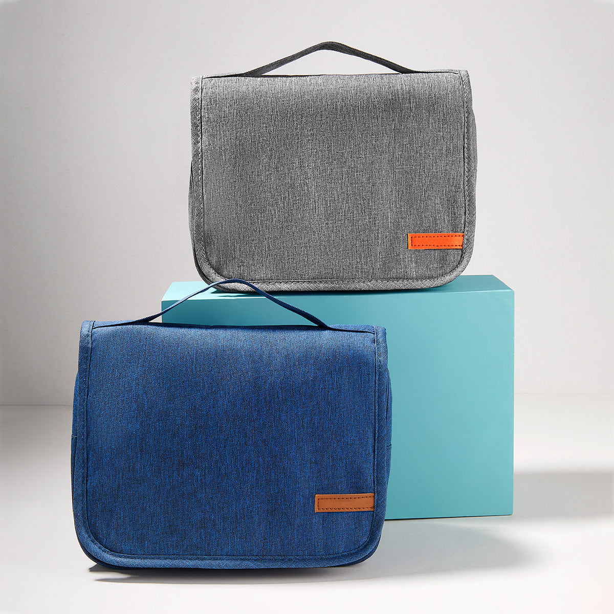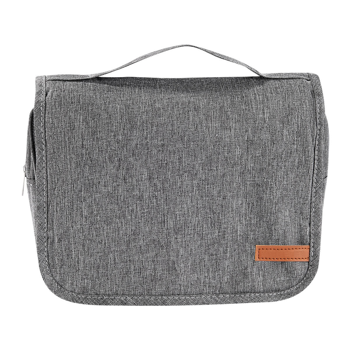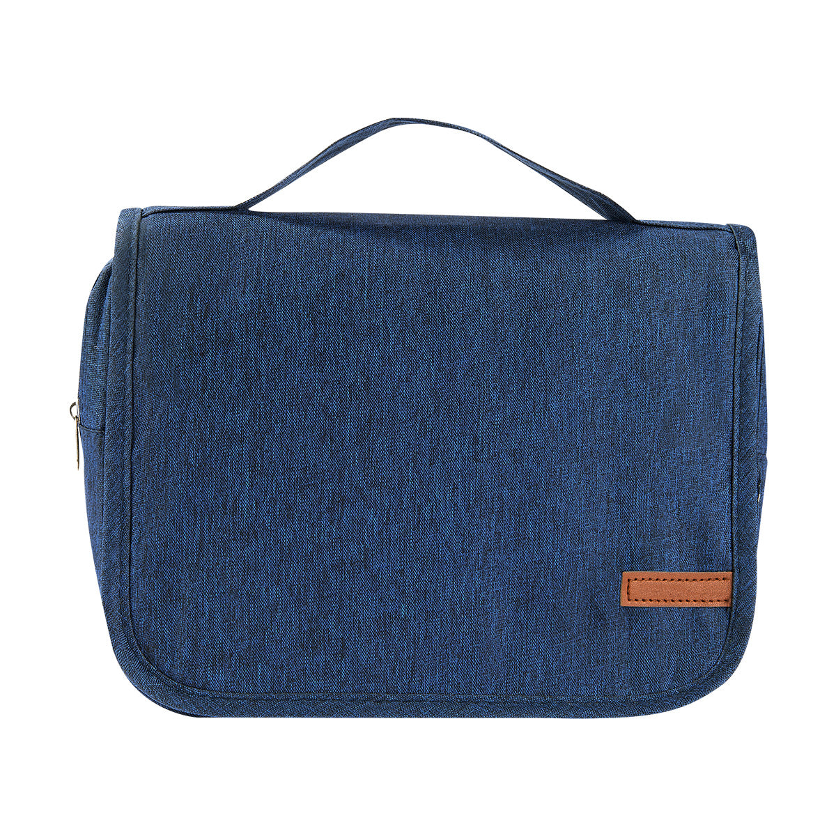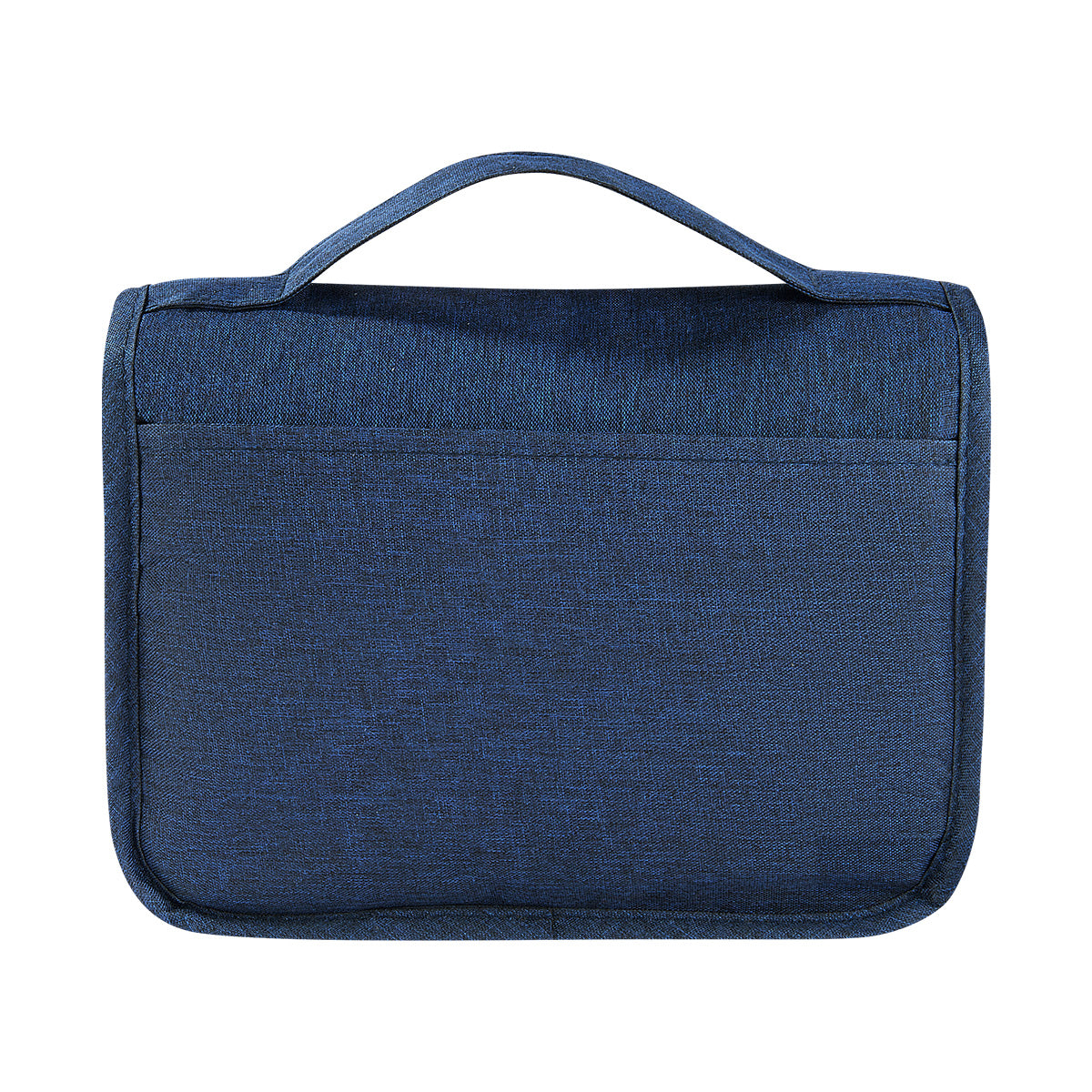 Organizador con cierre de velcro. Compartimento principal con cierre, elásticos internos, separadores de tela para una mejor organización de artículos personales y material de malla para su ventilación. Incluye bolsillo frontal con cierre, bolsillo superior impermeable, gancho de plástico para colgar, bolsillo en la parte posterior y asa superior.