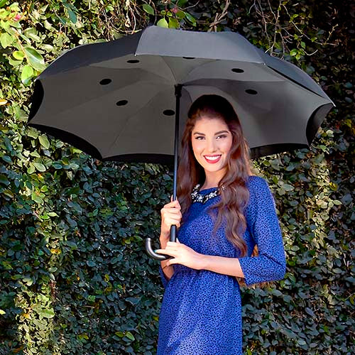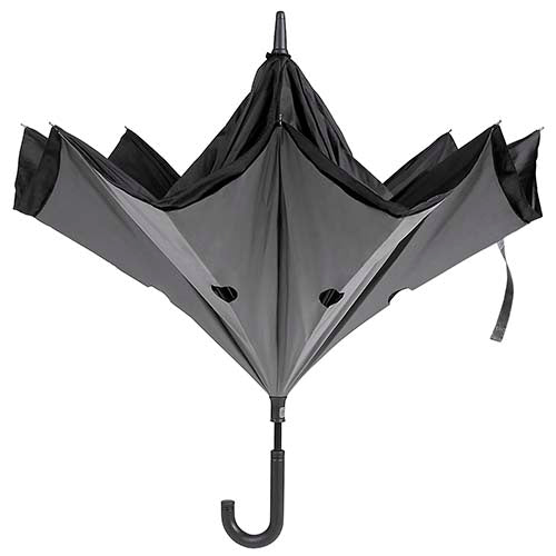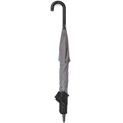 Paraguas reversible. Manual, 8 paneles dobles y mango de plastico. Incluye funda con correa.