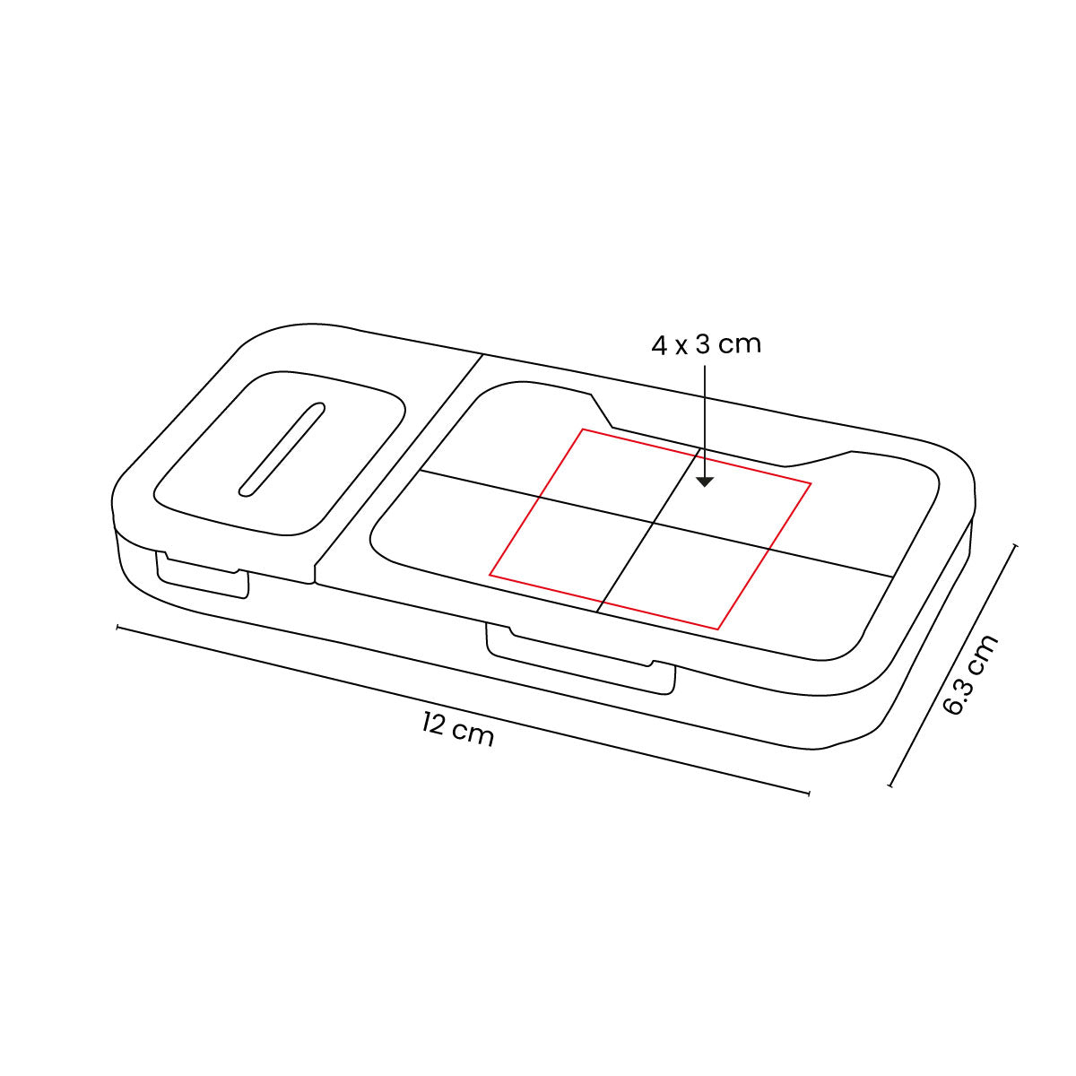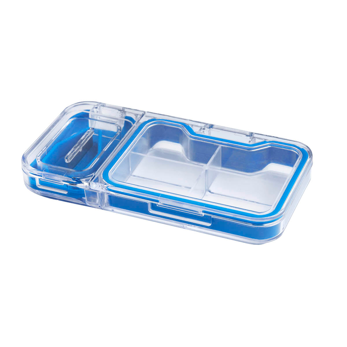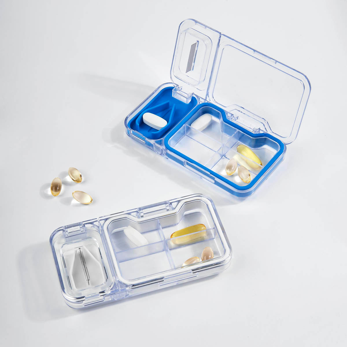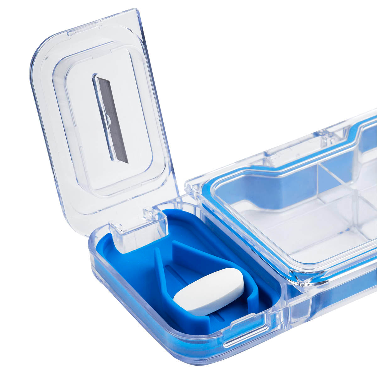 Pastillero con cortador integrado que permite dividir tus pastillas de manera segura y precisa. Ademas, sus cuatro compartimentos ofrecen un espacio optimo para organizar tus dosis de manera sencilla y eficiente. Compacto y portatil, es ideal para llevar en el bolso, en la oficina o durante tus viajes.