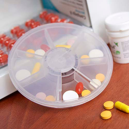 Pastillero con 7 compartimentos para cada dia de la semana.