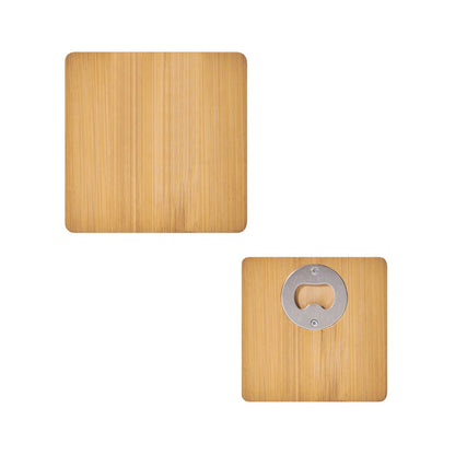 Portavasos de bambu con destapador para botellas. La madera es un producto natural el cual puede presentar variaciones en tonalidades y vetas.