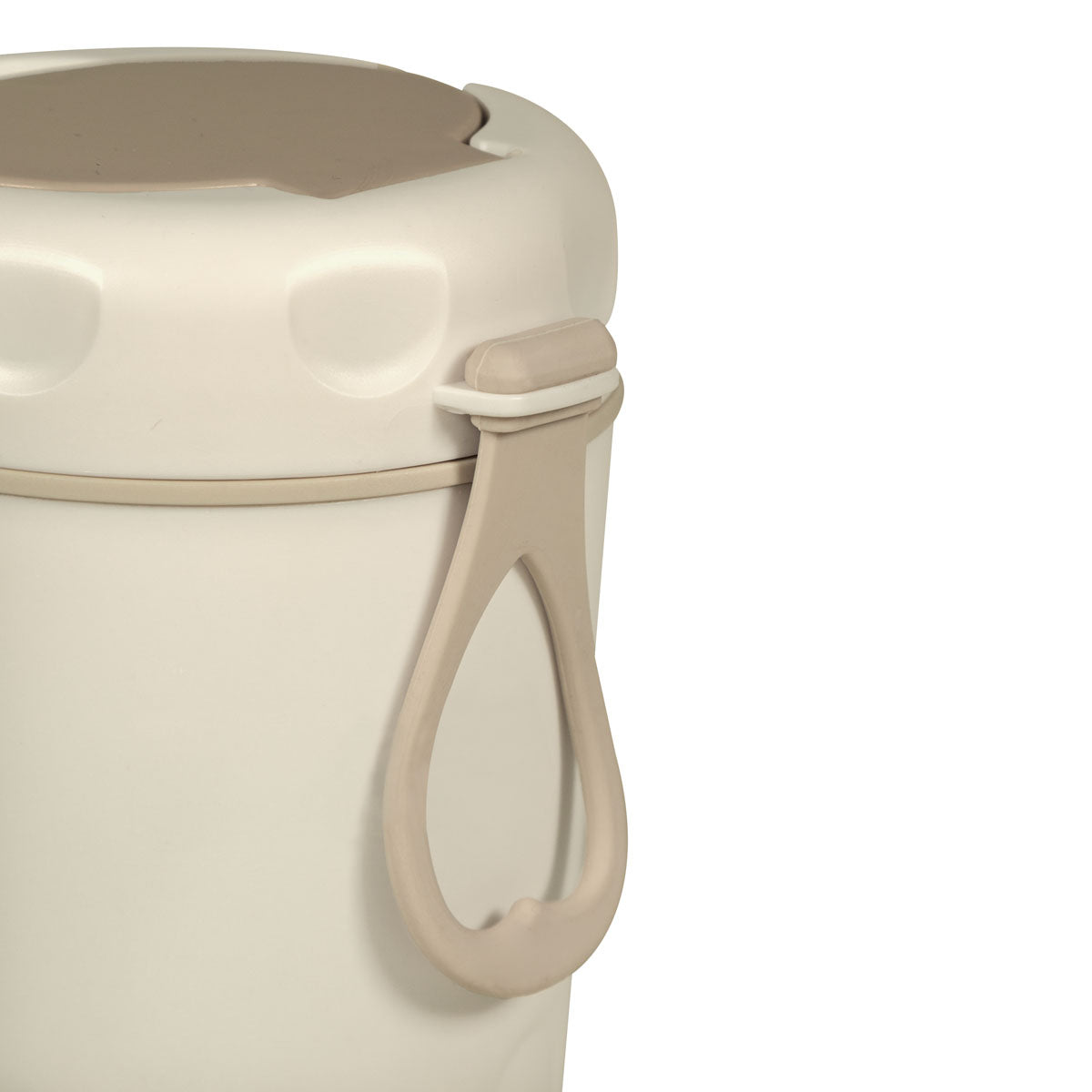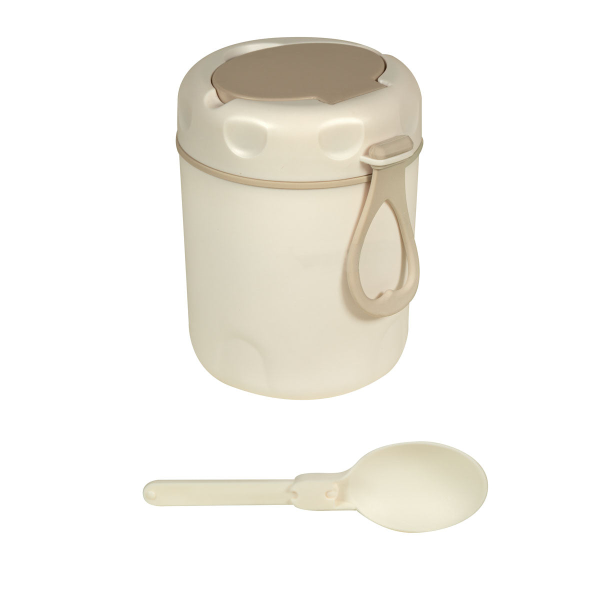Contenedor de alimentos con interior de acero inoxidable, perfecto para conservar la temperatura de los alimentos por mas tiempo. Su tapa de rosca garantiza un sellado hermetico, evitando derrames indeseados durante su transporte. Ademas, incluye una cuchara plegable, misma que se guarda en un compartimento integrado en su tapa. Con un diseno compacto, este contenedor es ideal para llevar tus alimentos de manera facil y sin complicaciones. Apto para el uso en lavavajillas. No apto para uso en microondas.