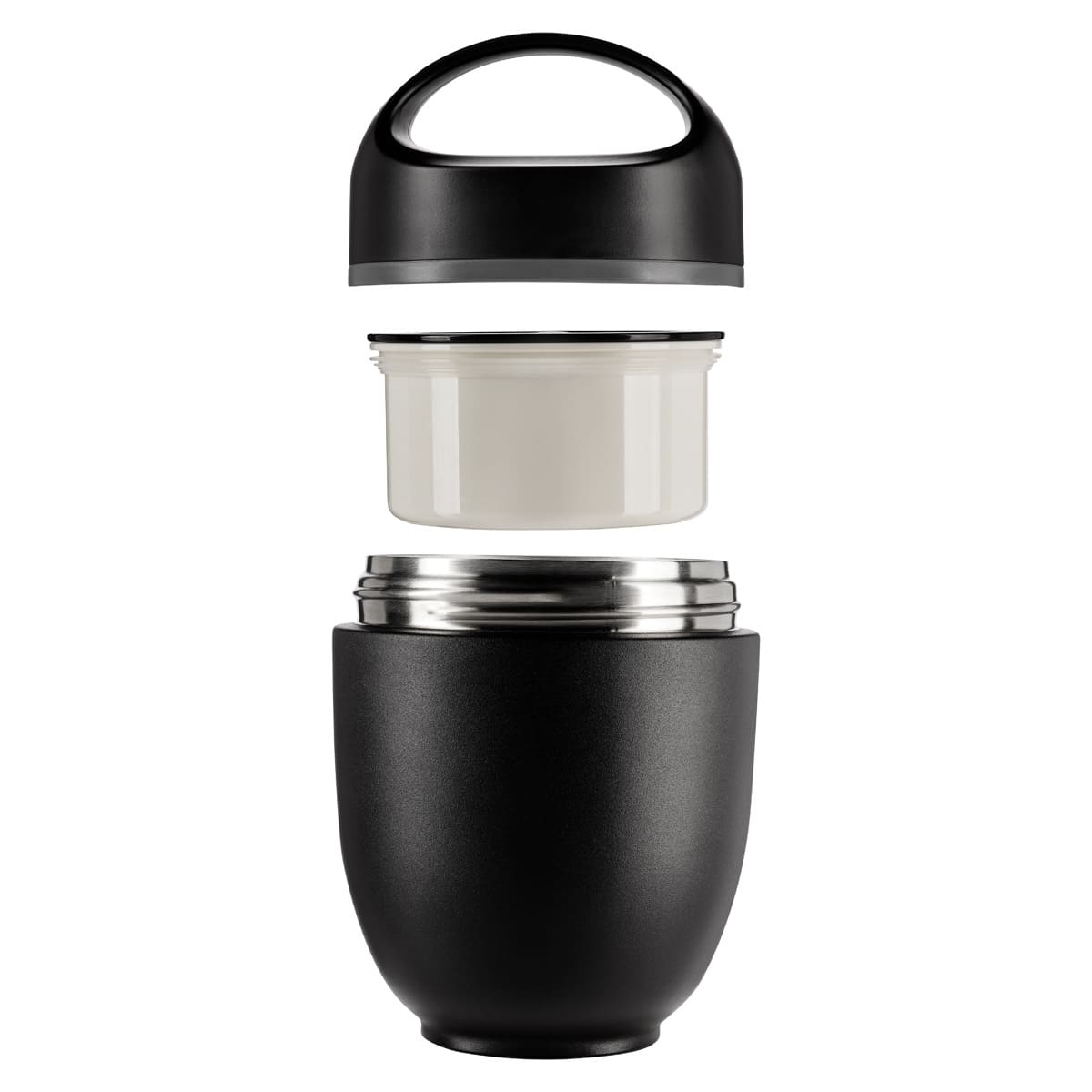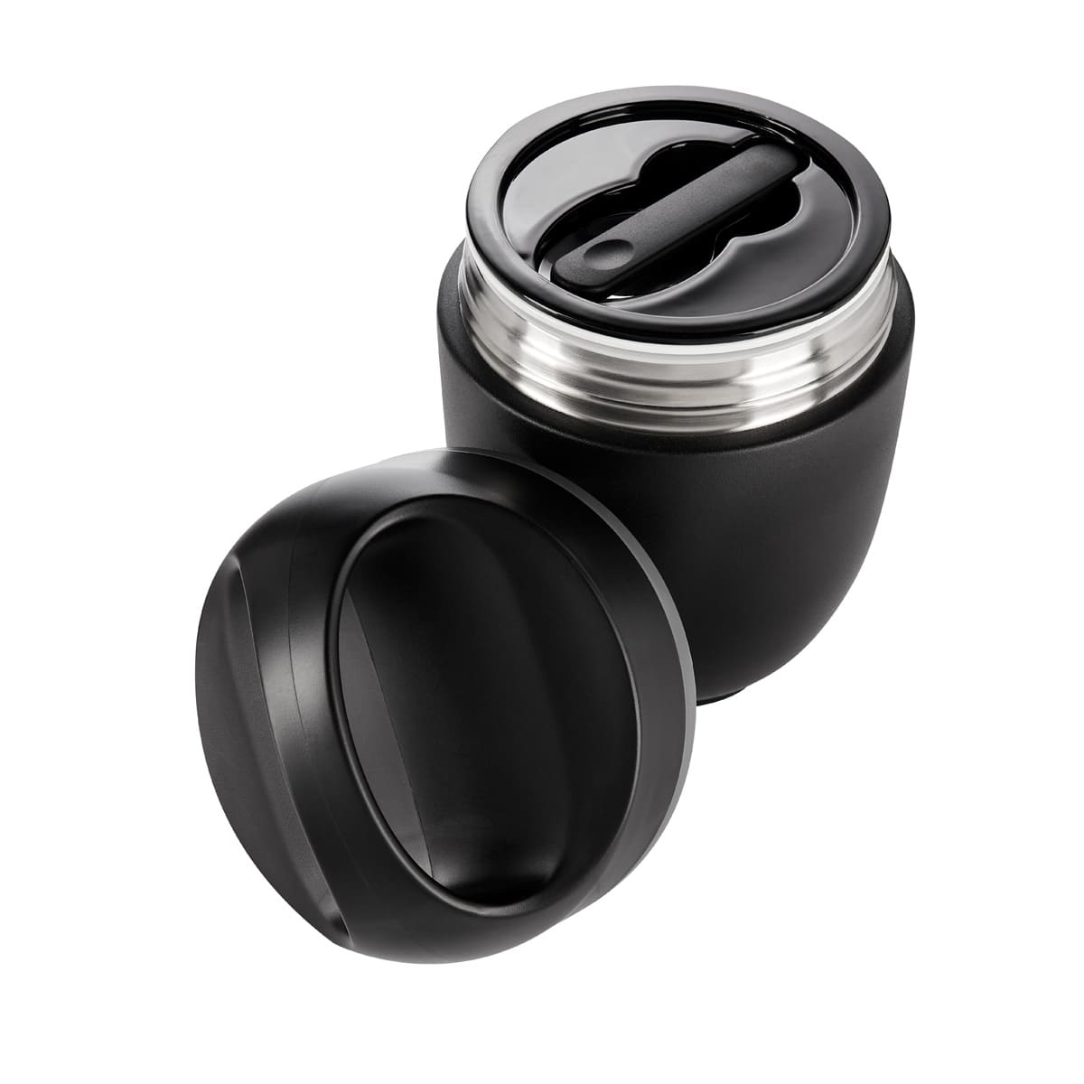 Contenedor de alimentos con doble pared metalica. Sellado al vacio. Separador interno de plastico, tapa y cuchara plegable. Mantiene tus alimentos calientes por 6 horas. Su diseno integra un asa en la parte superior para transportar con facilidad y base anti-derrapante para mayor estabilidad. Incluye caja individual. No apto para uso en lavavajillas, ni microondas.