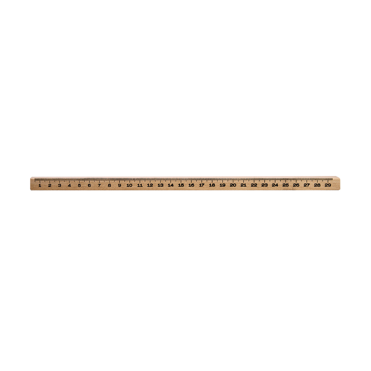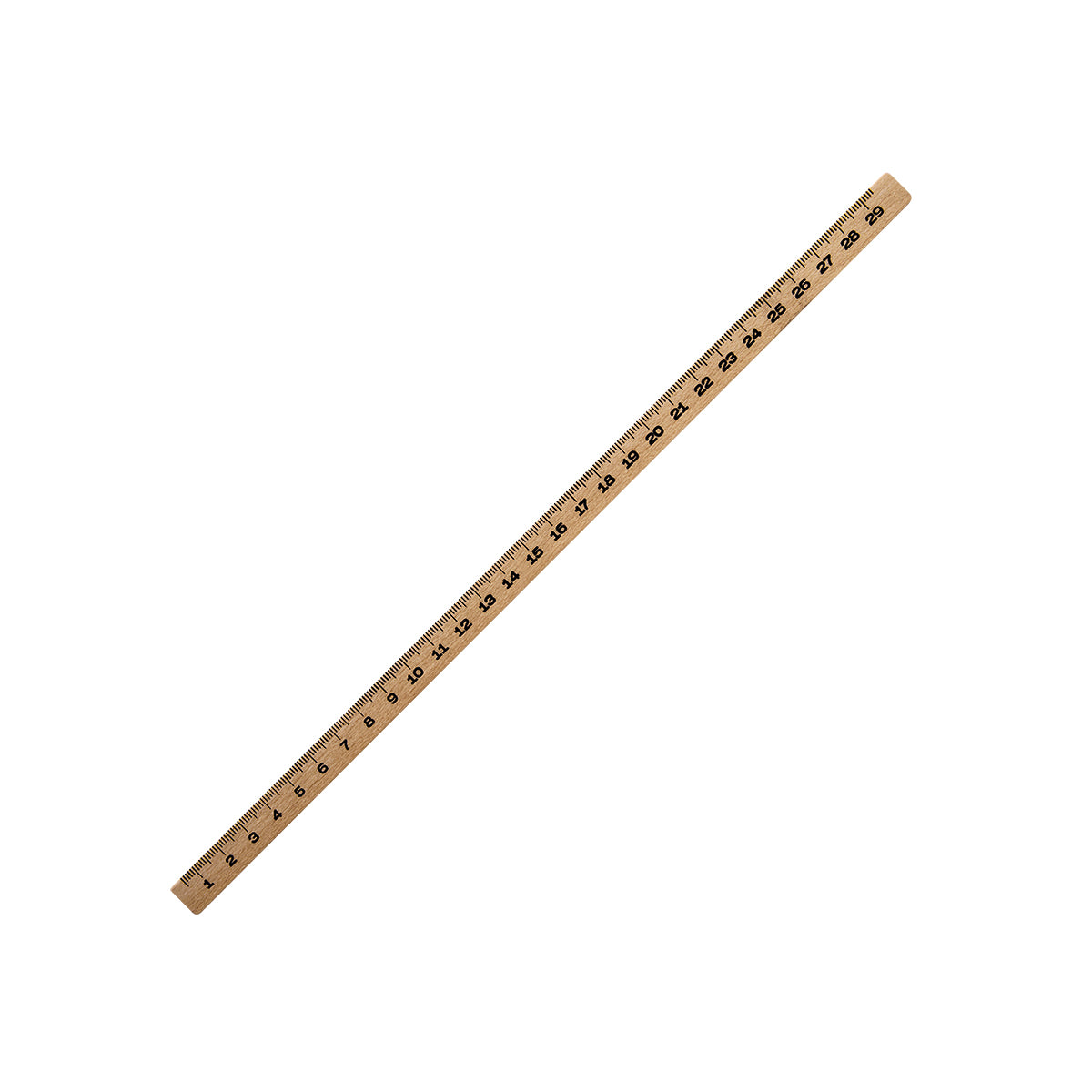 Regla de madera para ninos con escala de 30 centimetros contemplando el borde inicial y final. La madera es un producto natural el cual puede presentar variaciones en tonalidades y vetas.