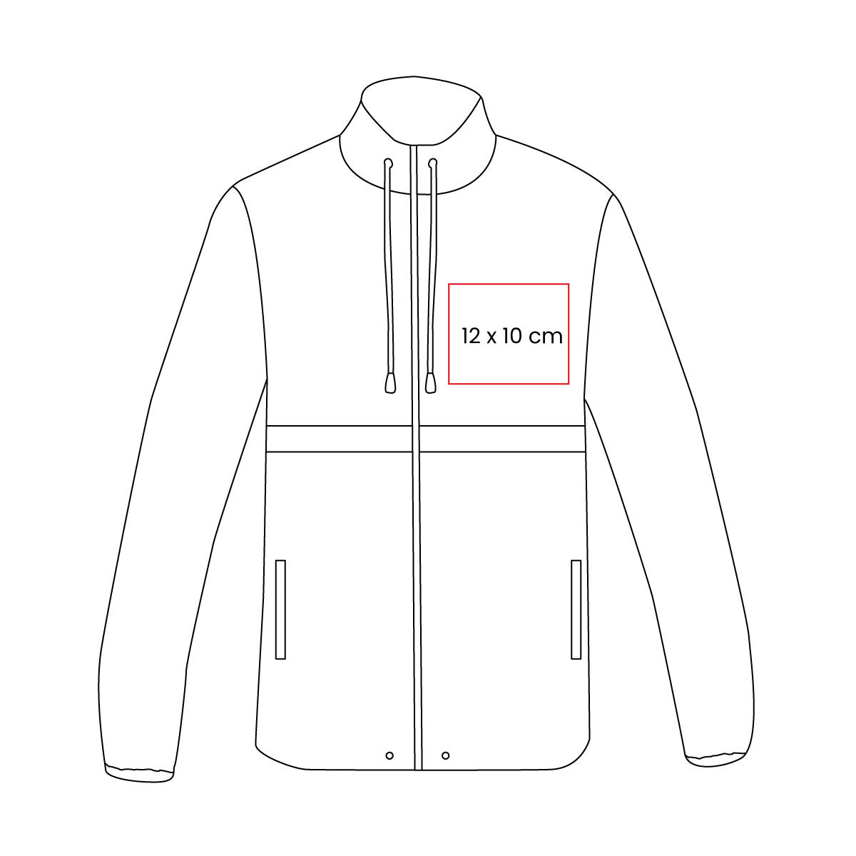Rompevientos con gorro, cierre en medio y bolsas frontales. Poliéster 100% y recubrimiento acrílico.