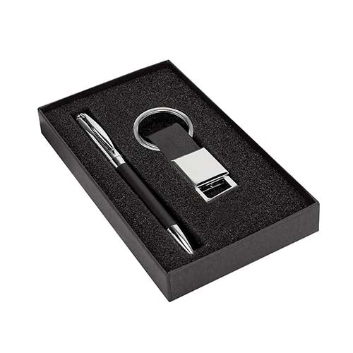 Incluye boligrafo, llavero y caja de regalo.