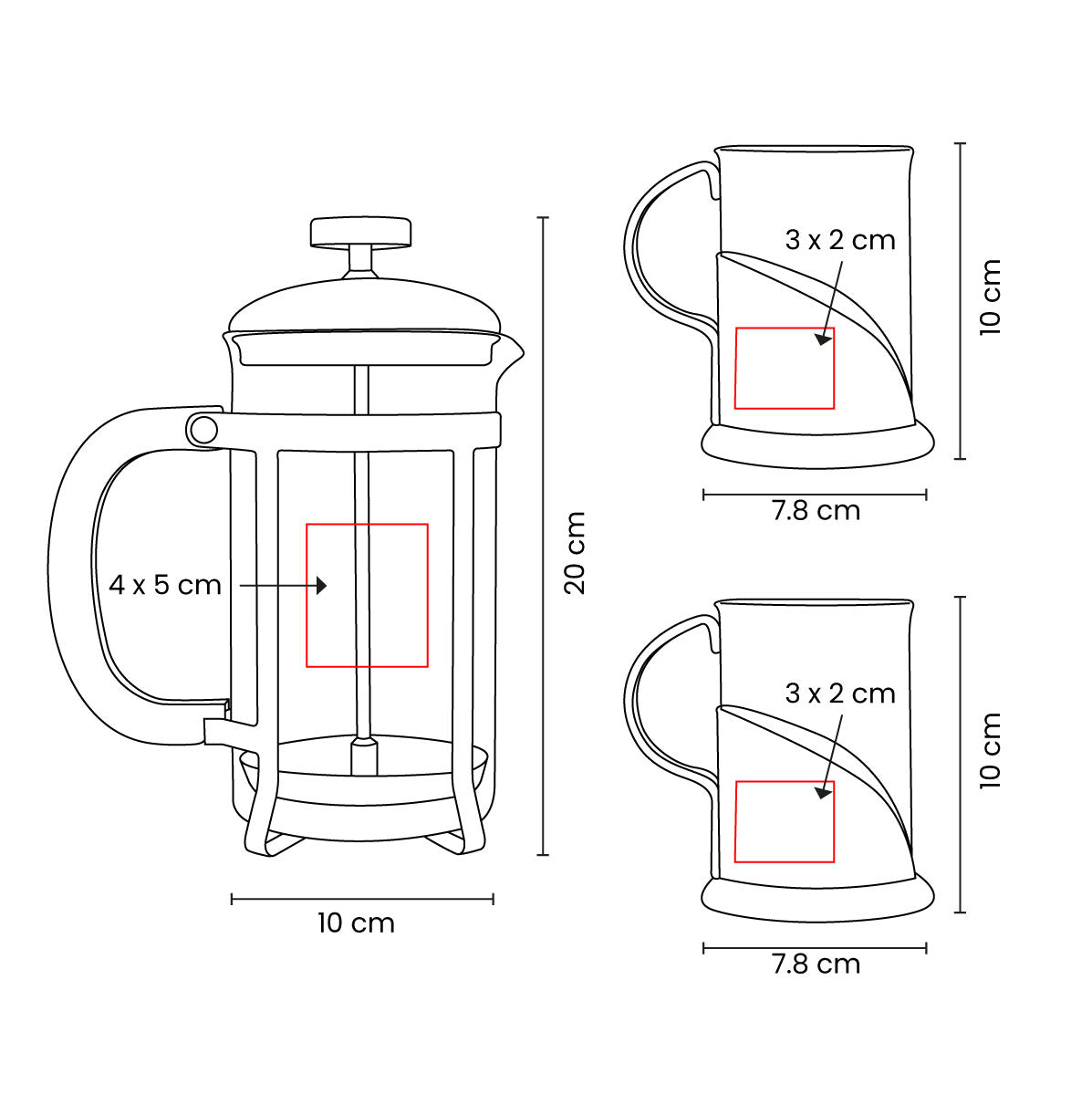 Medidas de producto: 10 x 20 cm Prensa Francesa / 7.8 x 10 cm Tazas