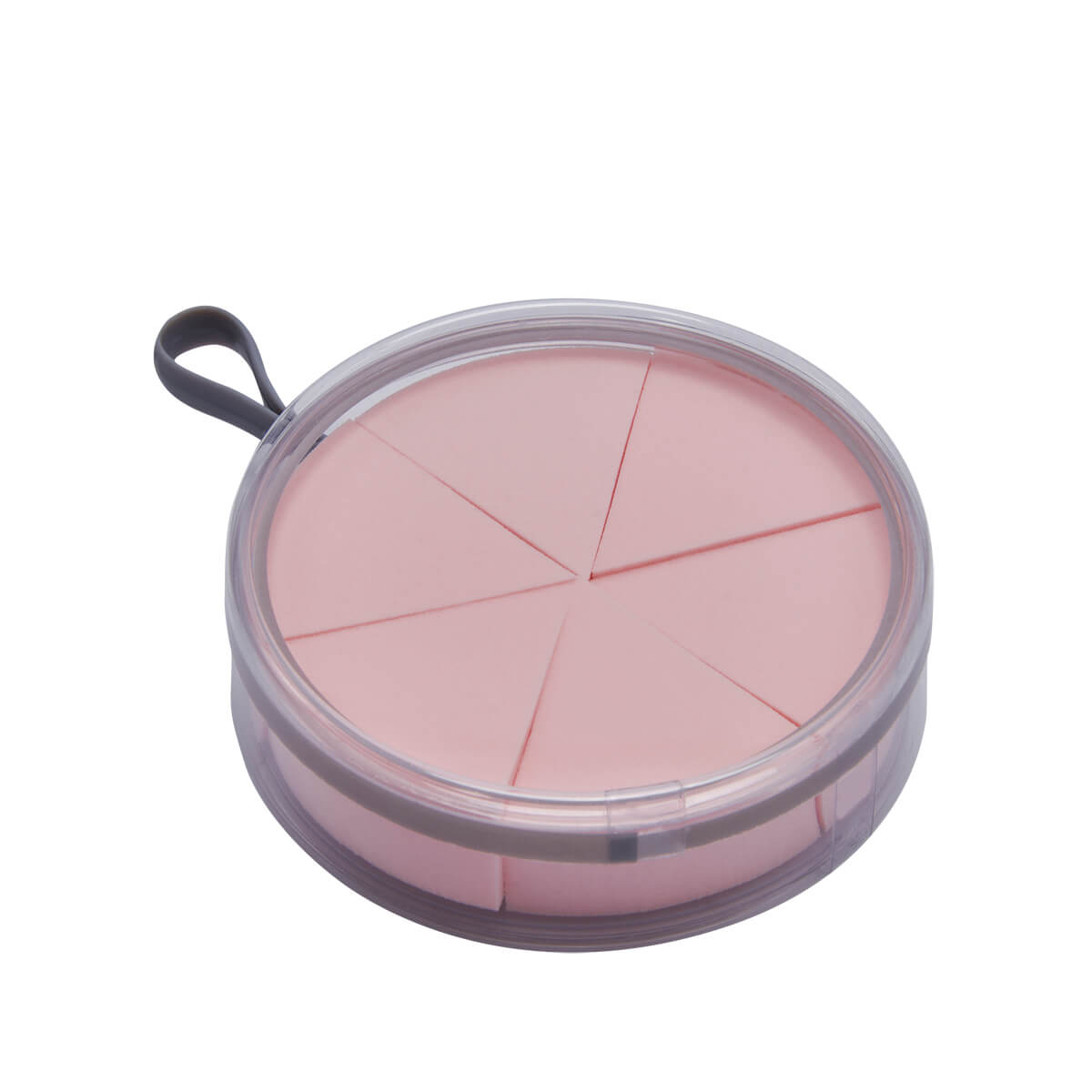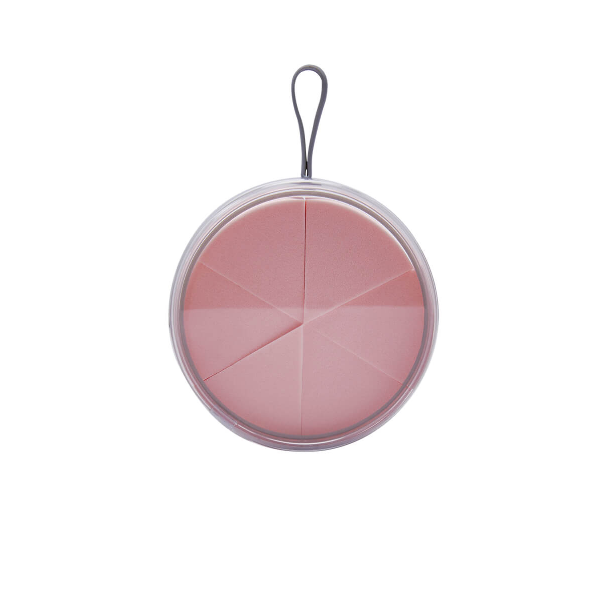 Estuche con 6 esponjas para maquillaje. Las esponjas tienen forma de cuna para una facil aplicacion de maquillaje o corrector liquido y en crema. Tienen una textura suave y absorbente al agua. Pueden utilizarse humedas o en seco.