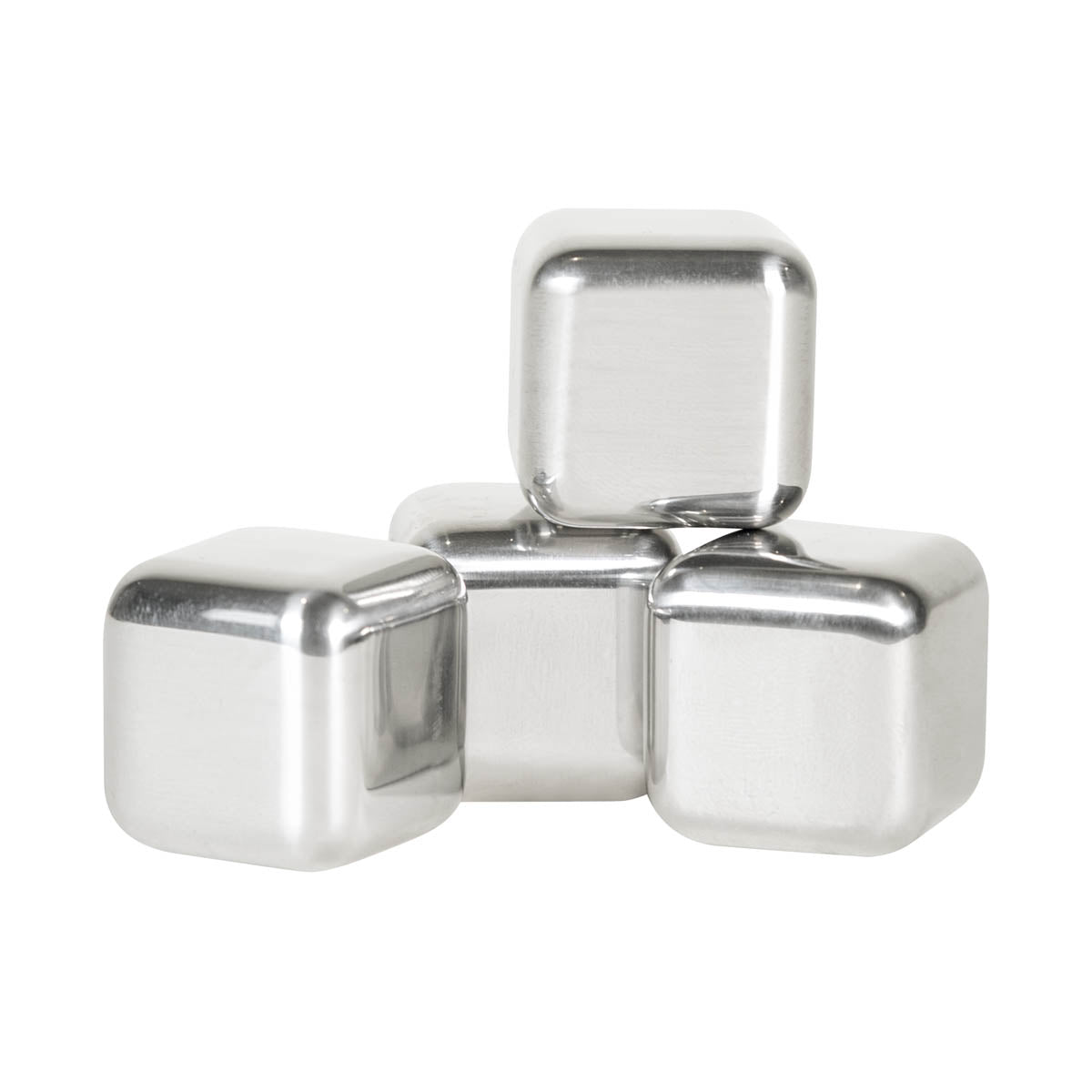 Set de bar. Incluye caja rígida de regalo, licorera con funda de curpiel y tapa con rosca para evitar derrames, vaso de cristal, set de 4 cubos enfriadores con funda de terciopelo, pinzas para hielo y 2 mini vasos metálicos.