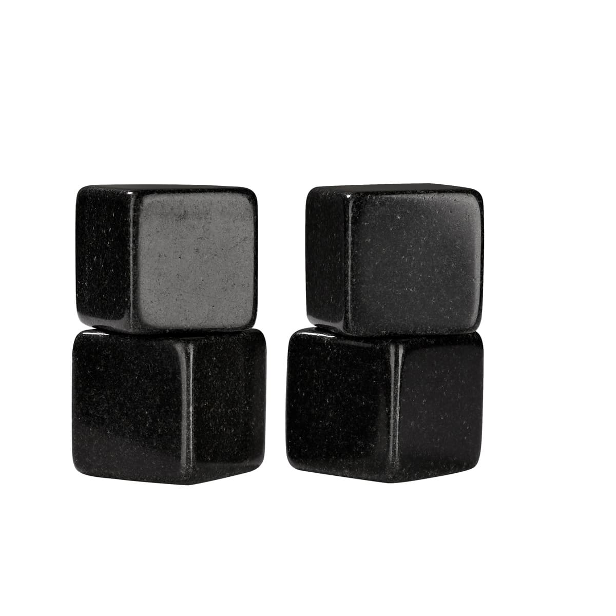 Set de bar. Incluye licorera, vaso de cristal, 4 enfriadores de piedra, bolsa de terciopelo con cierre de jareta y estuche de madera.