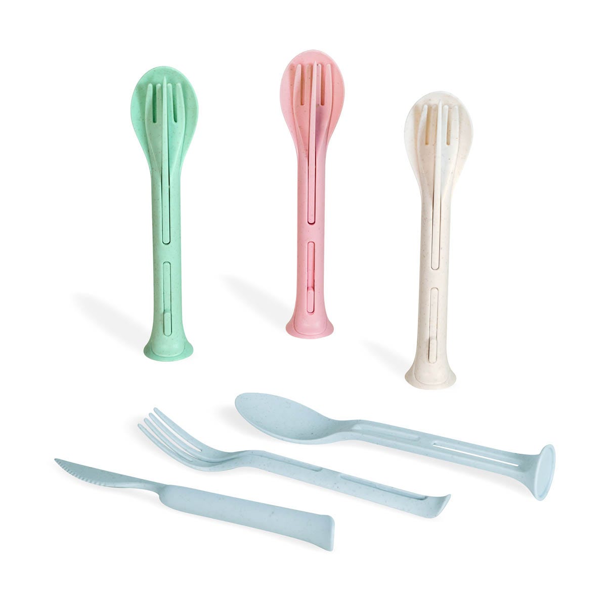 Set de cubiertos 3 en 1 desmontables. Cuenta con cuchillo, tenedor y cuchara. Tiene un peso ligero y es facil de transportar. Incluye caja individual.