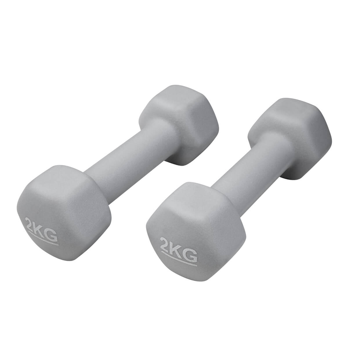 Par de mancuernas de 2 kg cada una. Su diseno compacto y ergonomico garantiza un agarre comodo gracias a su recubrimiento de PVC. Ademas, incluye una practica bolsa con jareta para transportarlas y almacenarlas facilmente, permitiendote entrenar en casa, en el gimnasio o donde lo necesites. Perfectas para ejercicios de fuerza, resistencia y rehabilitacion.