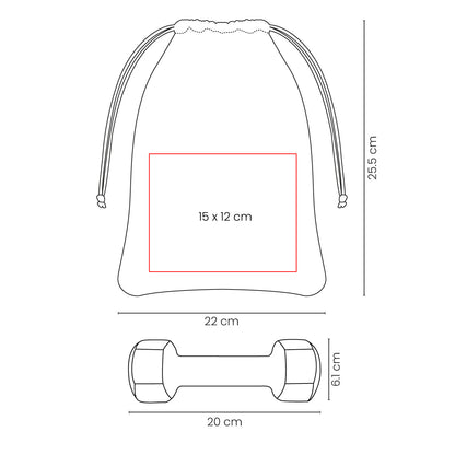 Medidas de producto: 20 x 6.1 x 6.8 cm Mancuerna / 22 x 25.5 cm Bolsa