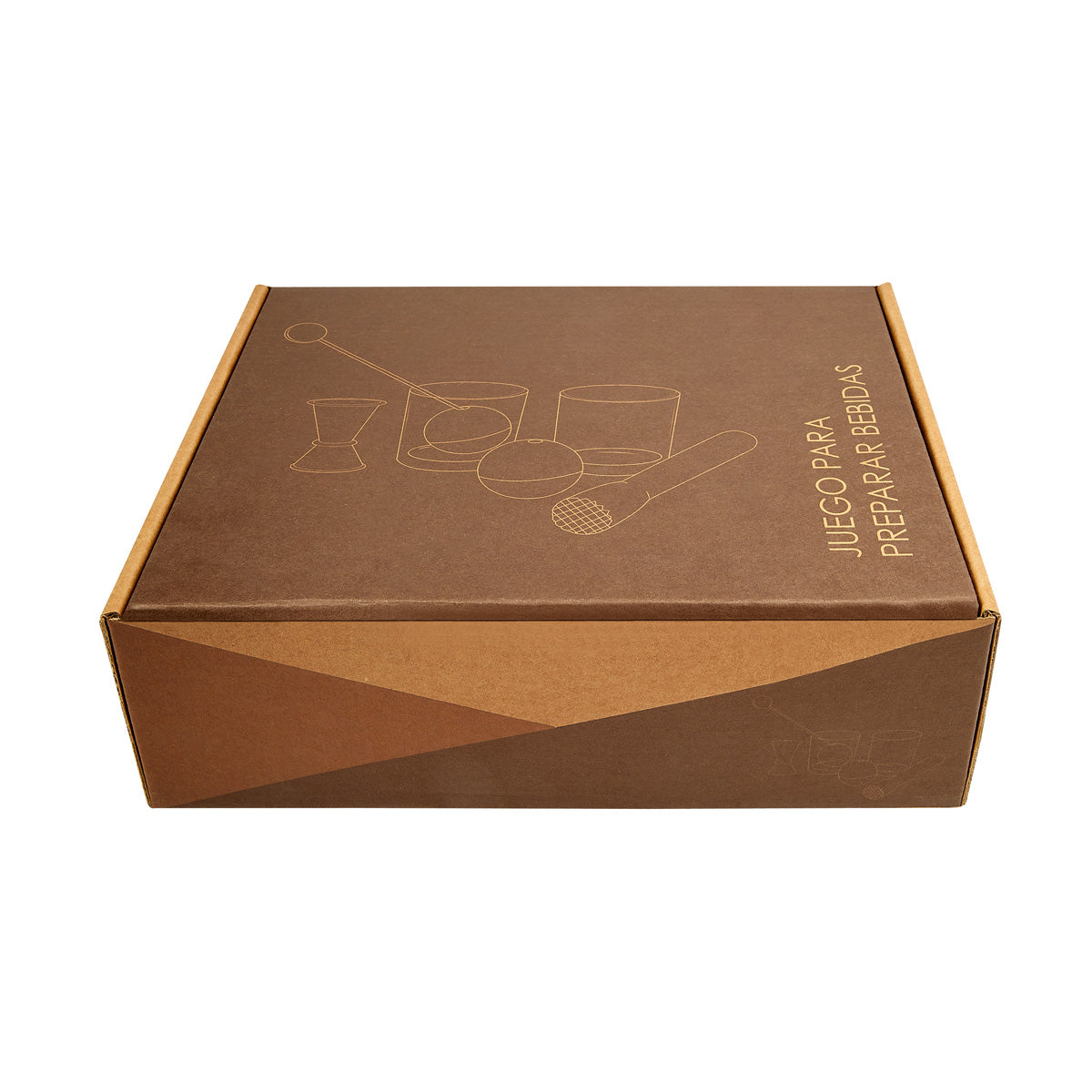 Medidas de producto: 24.2 x 7.5 x 19.7 cm Caja / 7 x 8.4 cm Vaso / 4.2 x 6.5 cm Jigger / 5.1 cm Esfera para hielo / 2.5 x 18.5 cm Batidor / 2.7 x 21.3 cm Mortero