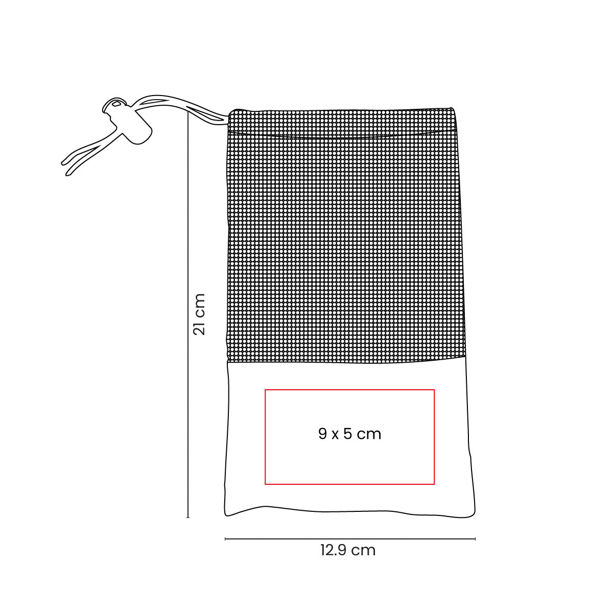 Medidas de producto: 12.9 cm x 21 cm Bolsa / 30.5 cm x 4.9 cm Banda / 2.70 m Cuerda