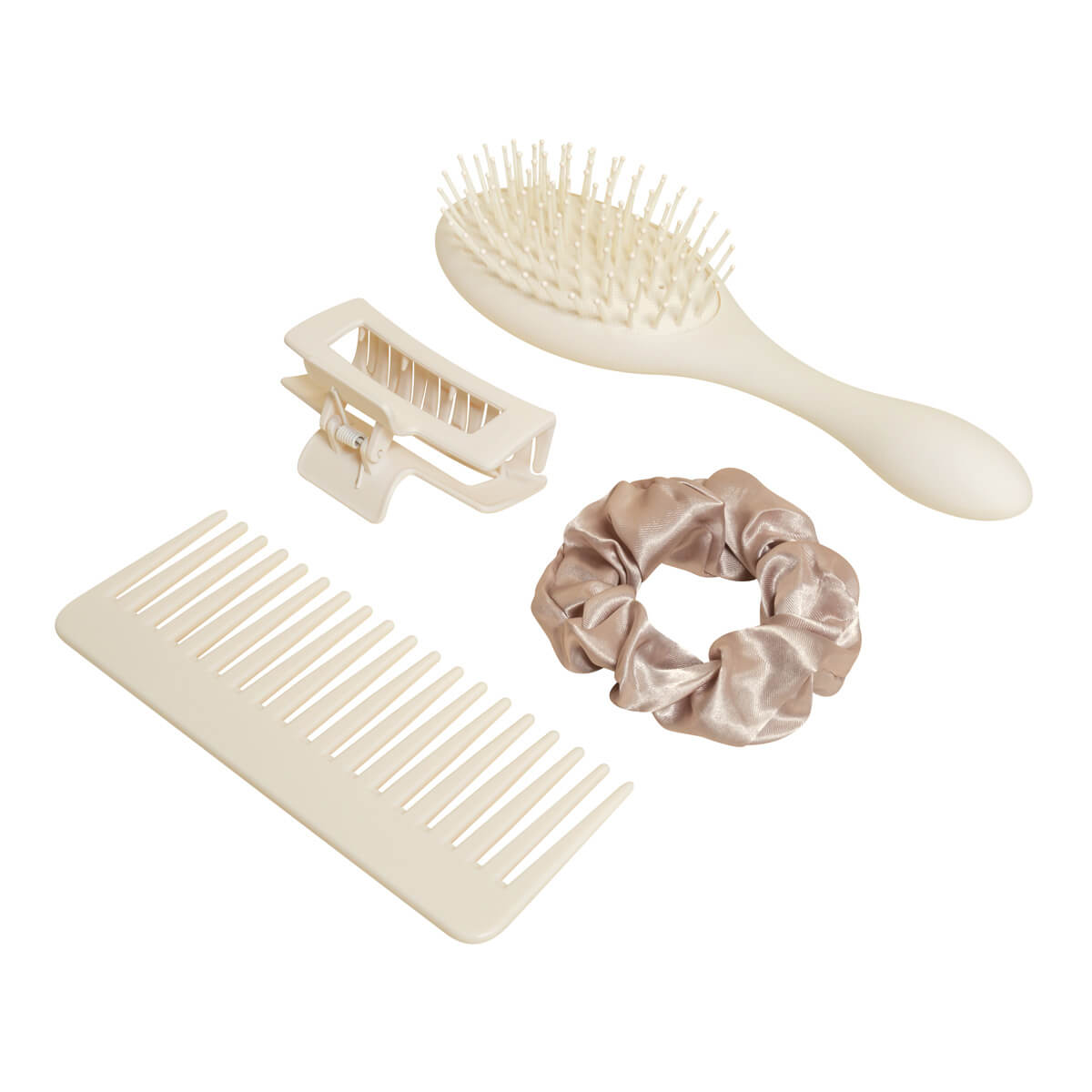 Complementa tu rutina para el cuidado del cabello con este set que incluye 1 cepillo, 1 peine, 1 pinza y 1 dona. Cada accesorio, hecho con materiales suaves al tacto, se mantiene perfectamente ordenado dentro de su estuche de curpiel.