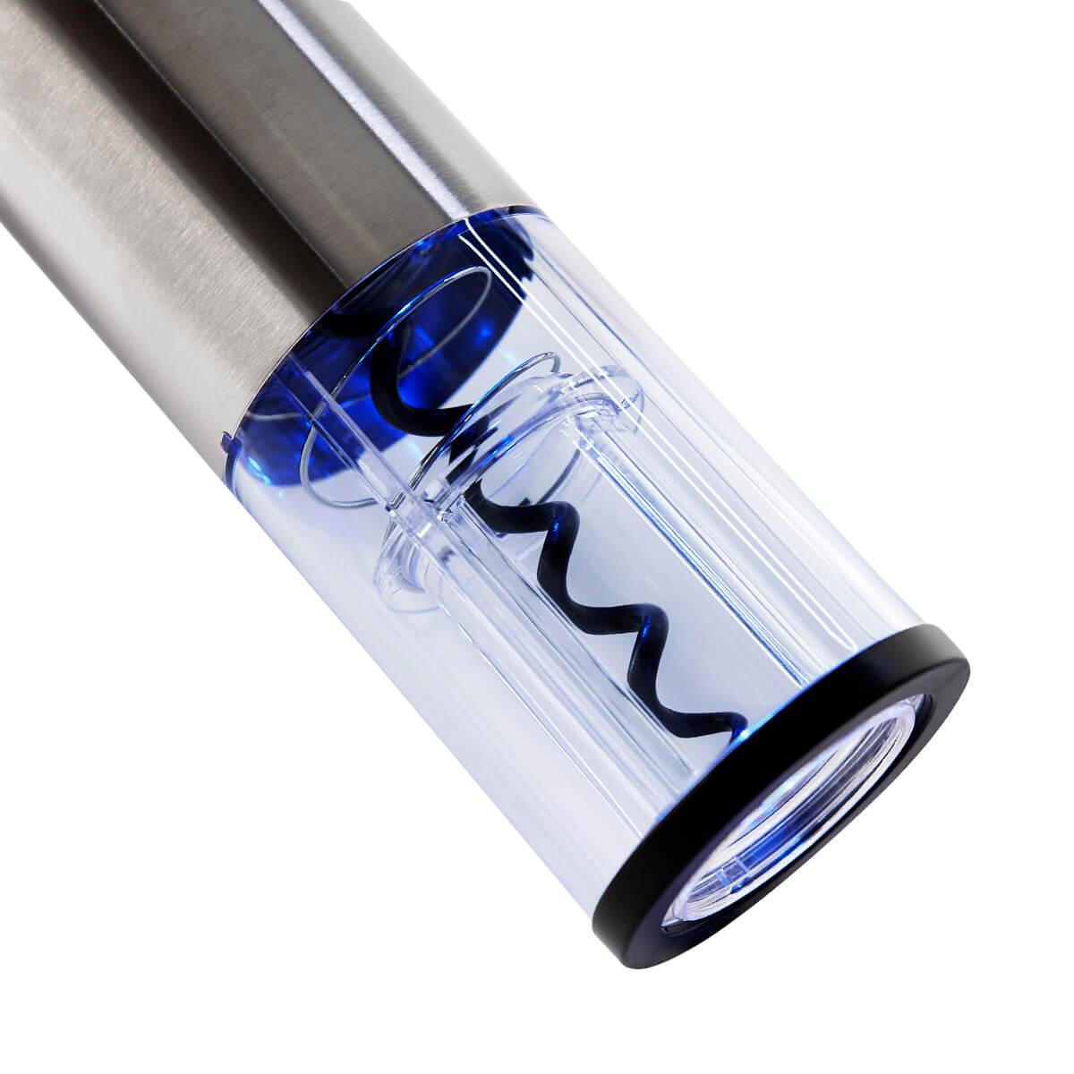 Set de sacacorchos electrico. Ideal para los amantes del vino. Contiene 1 sacacorchos con bateria recargable y puerto tipo C, 1 cortador de papel aluminio, 1 vertedor para evitar salpicaduras, 1 tapon protector de vacio y 1 base para organizar los diferentes accesorios. Incluye cable auxiliar, manual de uso y caja individual.