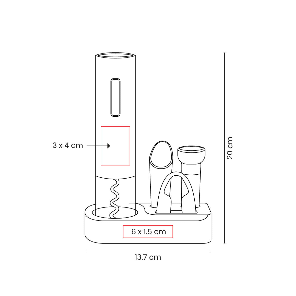Área de impresión: 6 x 1.5 cm Base / 3 x 4 cm Sacacorchos