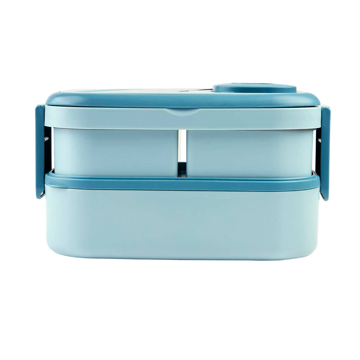 Set de lonchera y portaviandas. Incluye contenedor de alimentos con triple compartimento, capacidad total de 1.6 litros. Su tapa cuenta con asas plegables que facilitan su transporte, además, una práctica cuchara tenedor y un mini recipiente para aderezos. Su lonchera es el complemento perfecto, fabricada en poliéster con interior de aluminio. El compartimento principal, cuenta con un cierre seguro y un bolsillo interior de malla, para guardar objetos pequeños. Apto para microondas o lavavajillas. Capacidad para 6 latas.