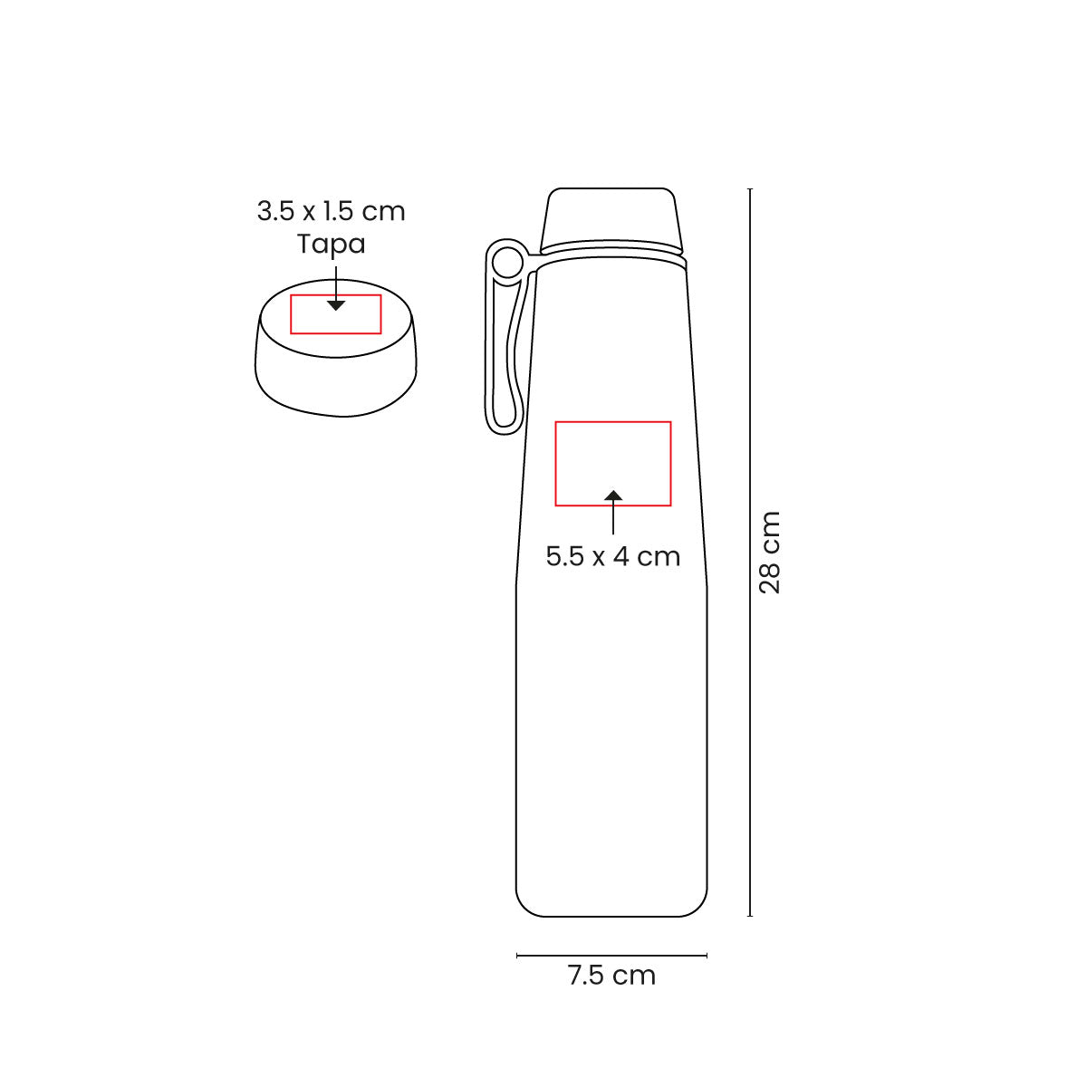 Área de impresión: 5.5 x 4 cm Termo / 3.5 x 1.5 cm Tapa
