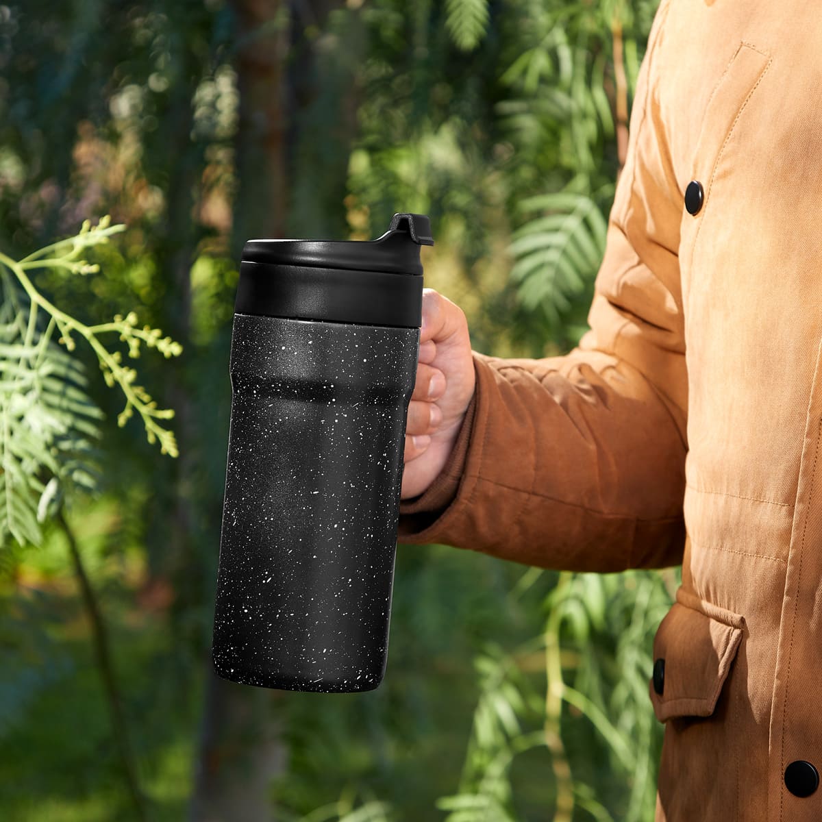 Doble pared. Cerrado al vacío. Pared interna y externa de acero inoxidable. Tapa de plástico con cierre de rosca y sobretapa con sistema push. Mantiene temperaturas caliente y fría 6 hrs aproximadamente. Efecto brisado. El terminado no es uniforme y puede variar por la técnica de producción. Incluye caja individual.