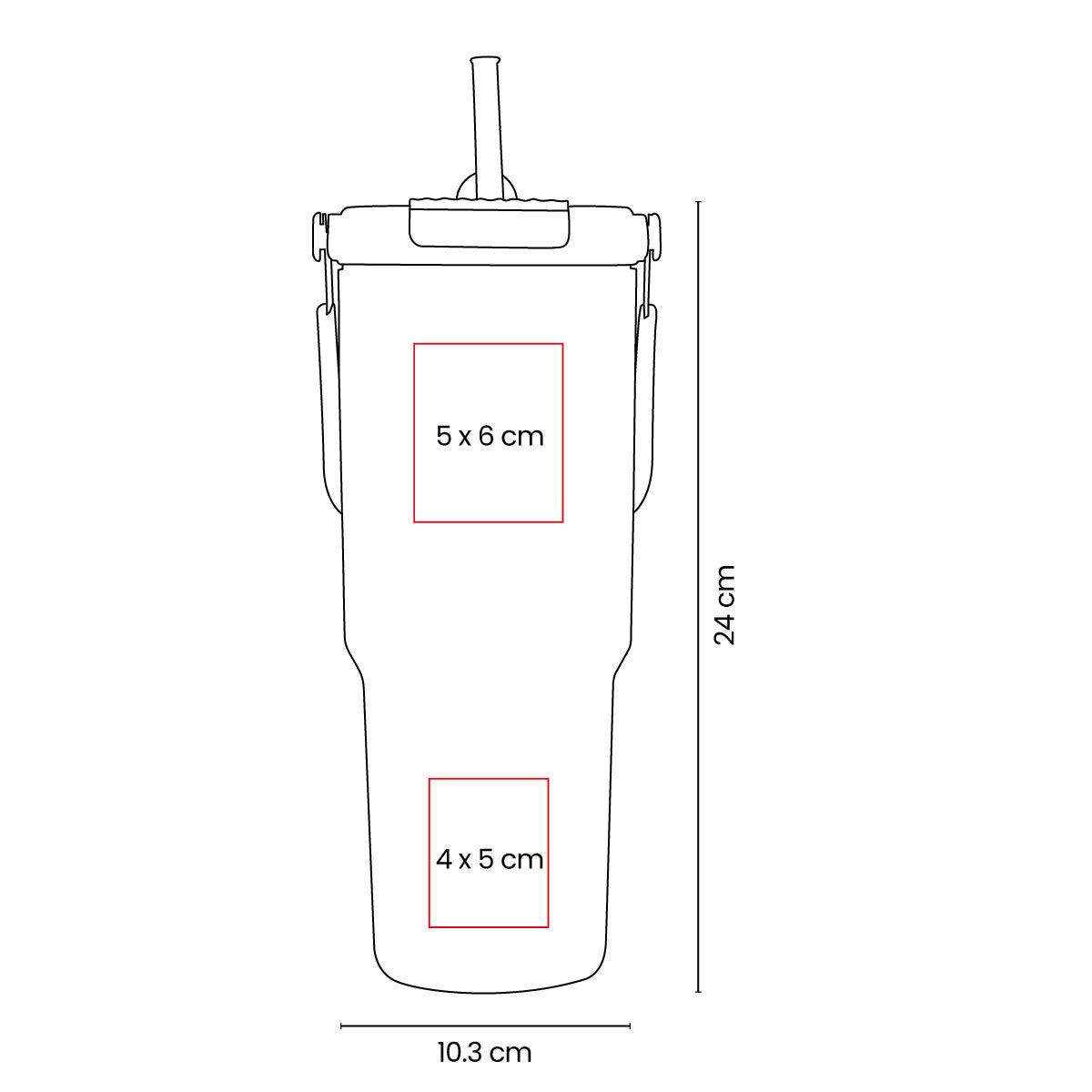 Termo de plastico de una pared. Incluye tapa con cierre de rosca que ofrece dos alternativas de uso, sobre tapa con sistema push y ranura especial para popote con aditamento para cerrar y evitar derrames. Incluye popote metalico que cuenta con un mecanismo de salida automatica y una base de silicon, que lo eleva al abrir el compartimento. Ademas, su practica asa plegable, permite llevarlo comodamente a cualquier lugar. Capacidad 28 Oz. Base de 7 cm de diametro. Incluye caja individual.