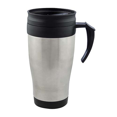 Doble pared. Pared interna plastico, pared externa acero inoxidable. Tapa de plastico con valvula de seguridad. Incluye caja individual.