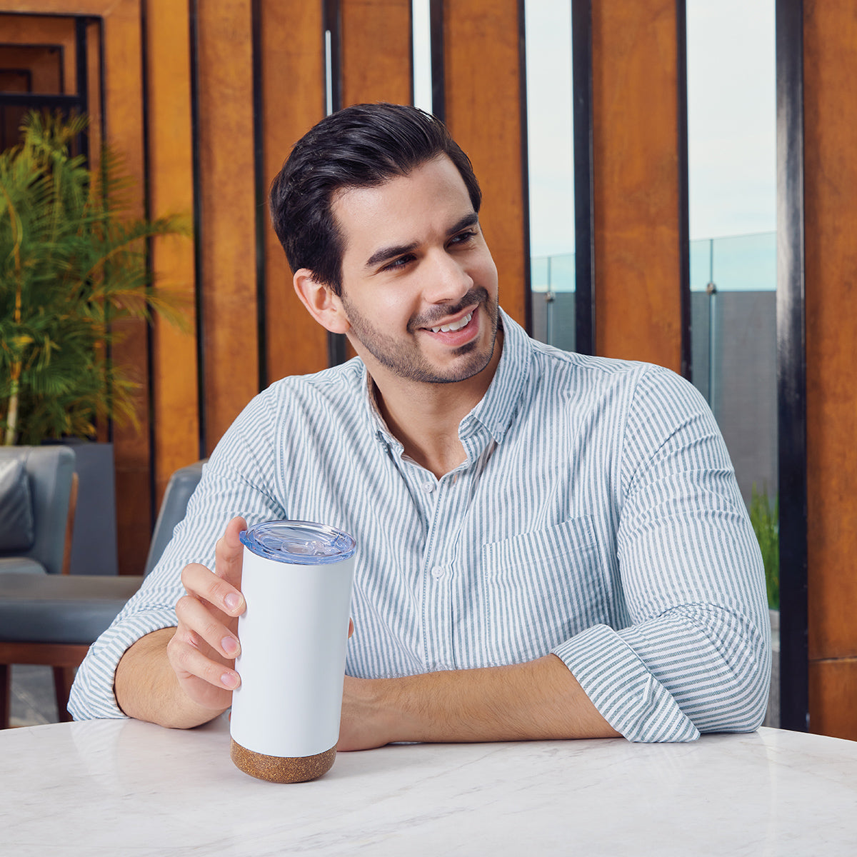 Doble pared. Cerrado al vacio. Pared interna y externa acero inoxidable. Base de corcho. Incluye tapa de plastico con valvula de seguridad. Mantiene temperatura caliente 6 hrs y temperatura fria 8 hrs aproximadamente. Incluye caja individual.