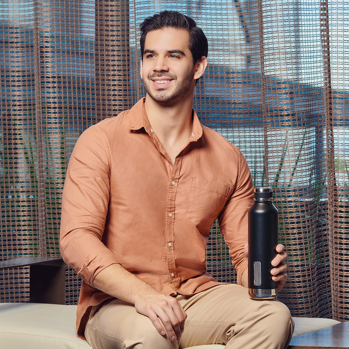 Doble pared. Cerrado al vacio. Pared interna y externa acero inoxidable. Tapa de rosca. Incluye placa para grabado laser. Mantiene temperatura caliente 6 hrs y temperatura fria 8 hrs aproximadamente. Caja individual incluida.